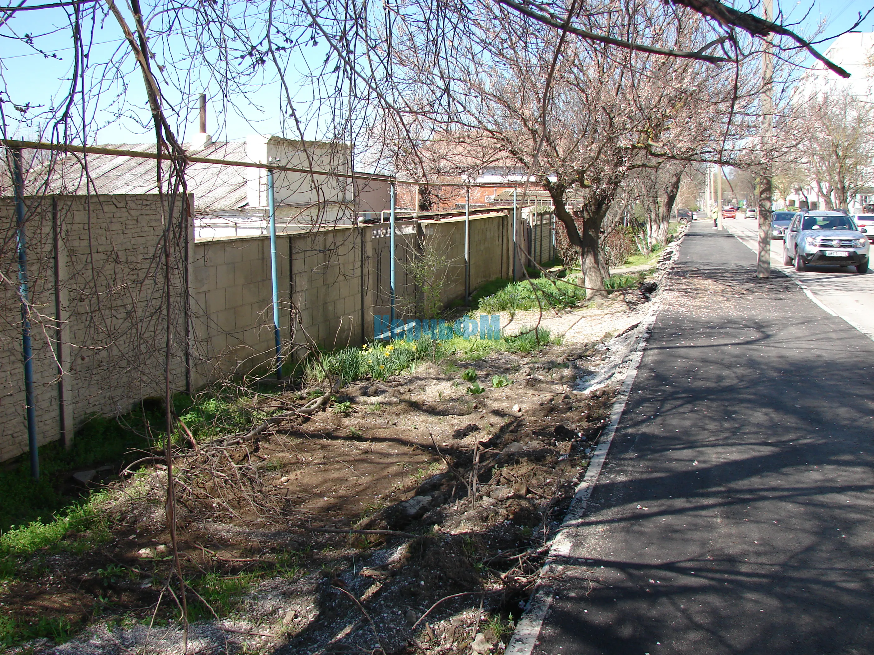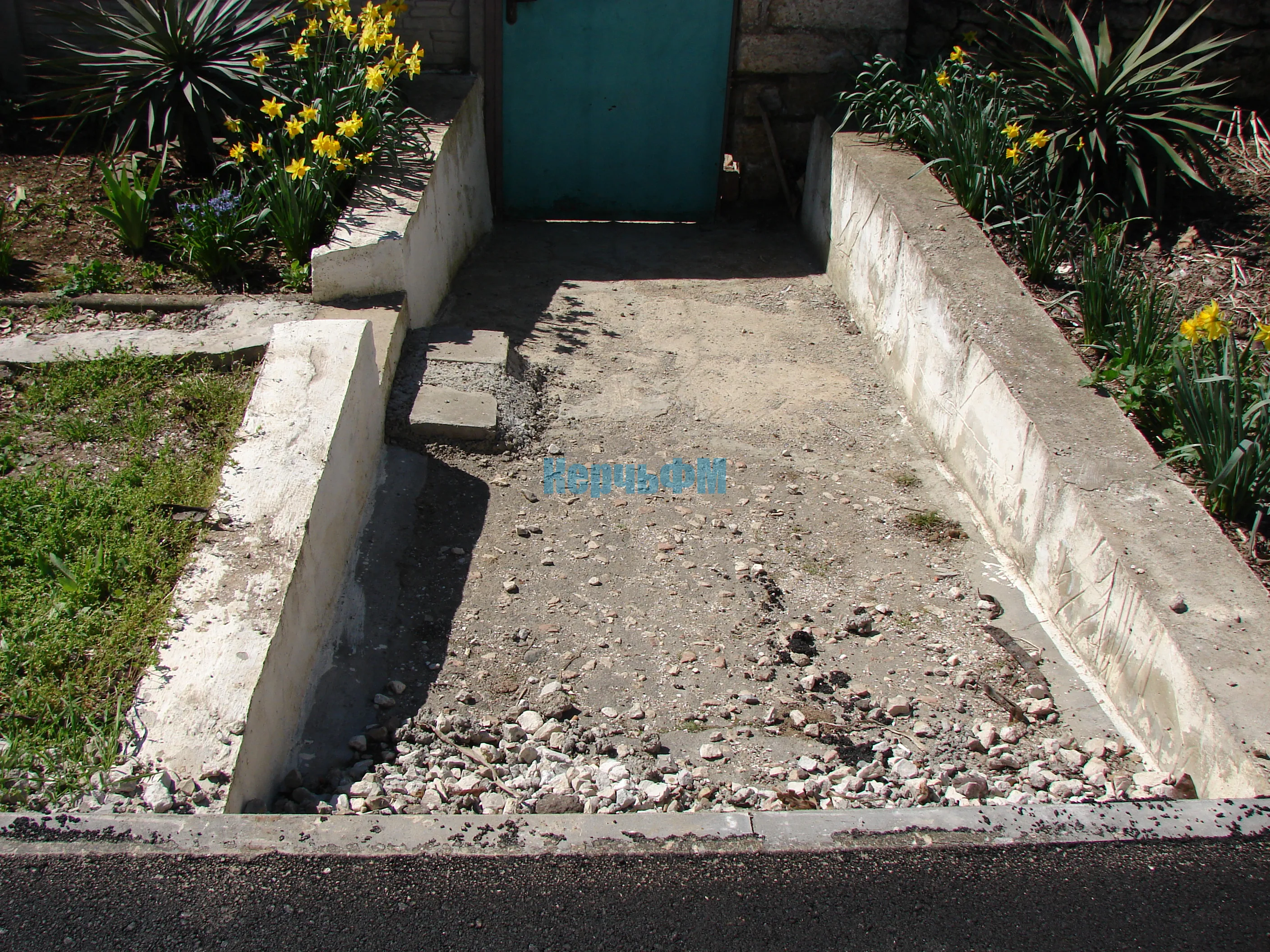 Со стороны домов его высота с бордюром составляет от 30 сантиметров по отношению к калиткам и воротам.