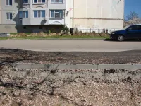 Тротуар проложен вплотную к дороге.