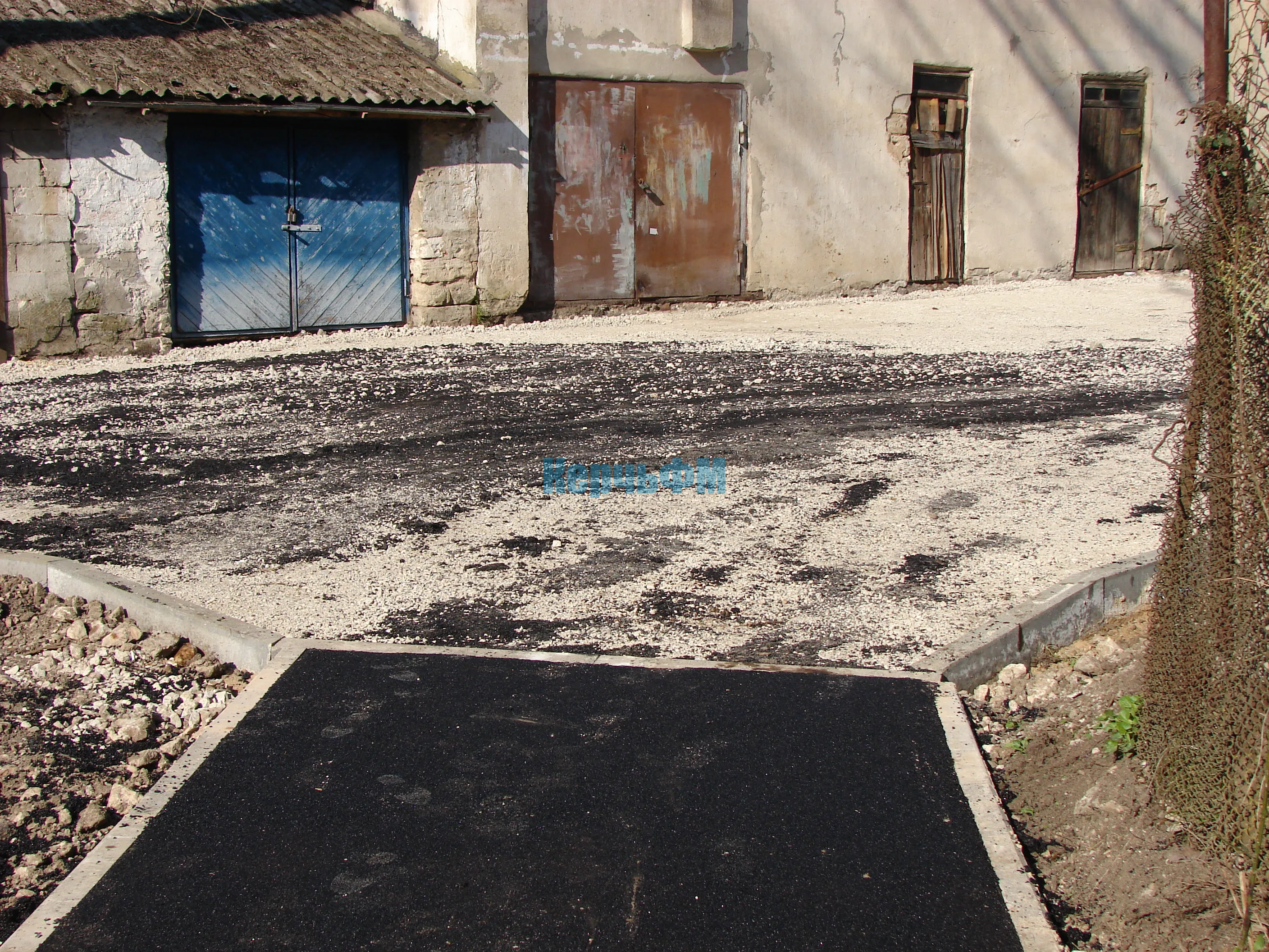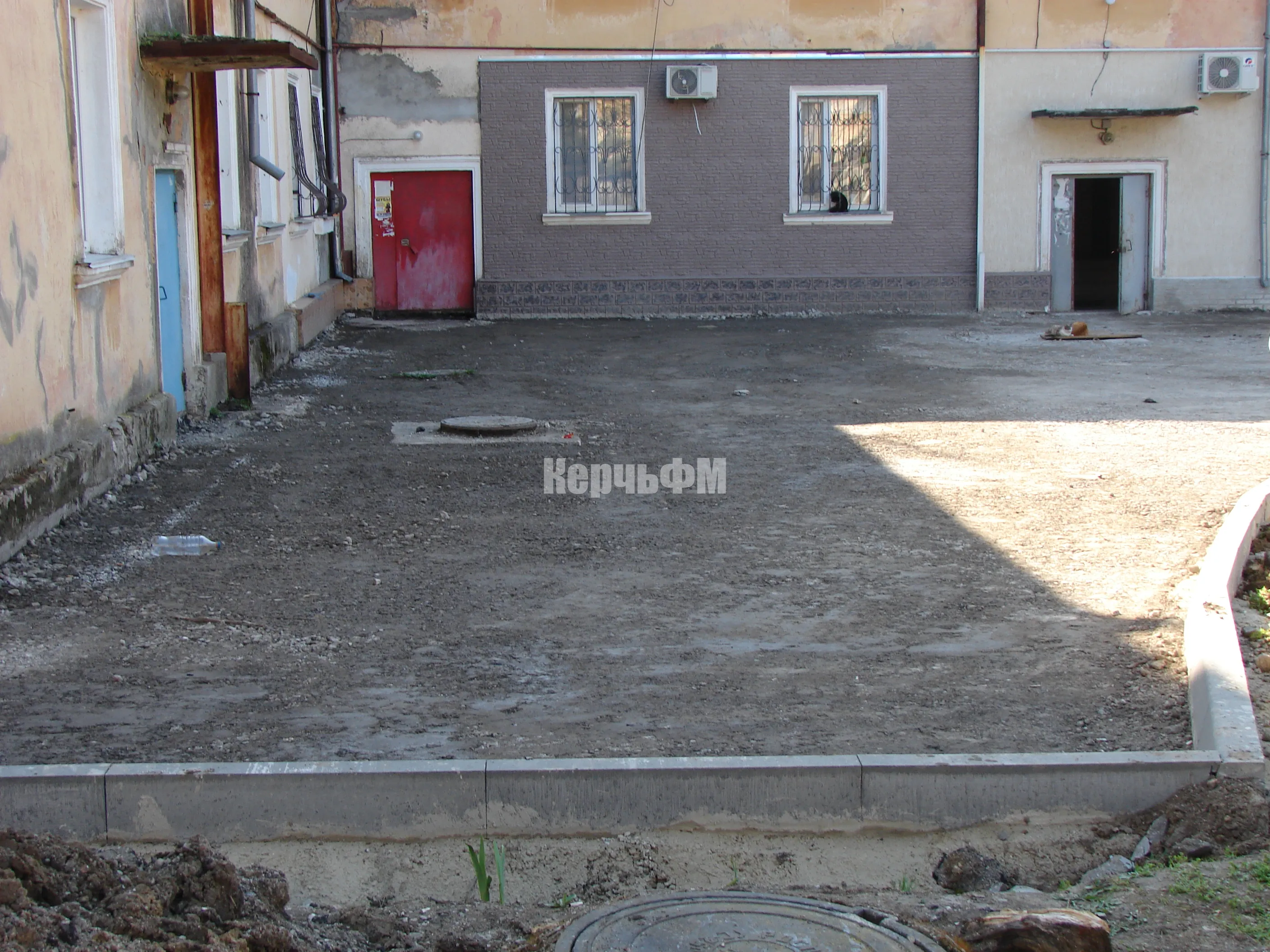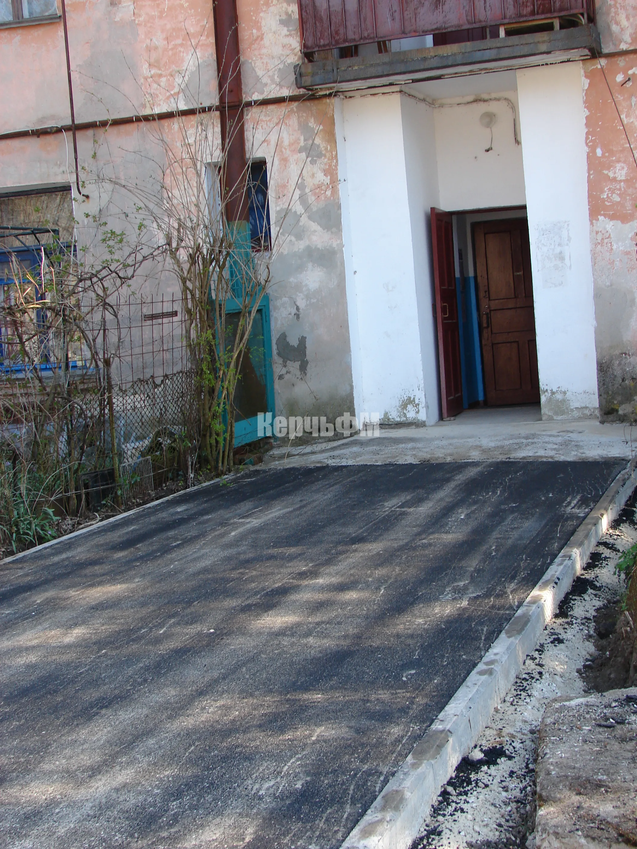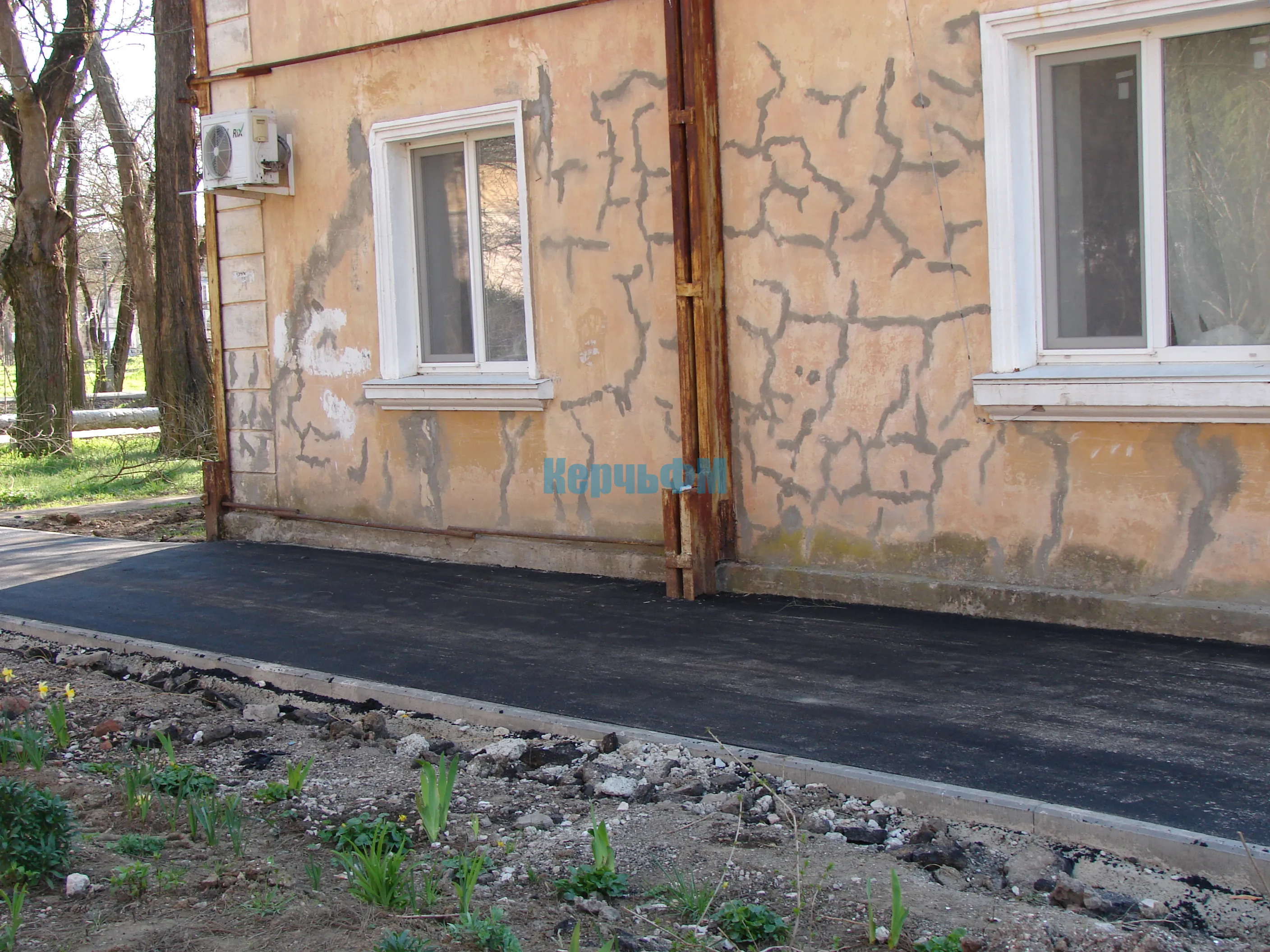 Во дворах МКД района Энгельса, 26 в Керчи асфальтируют пешеходные дорожки