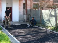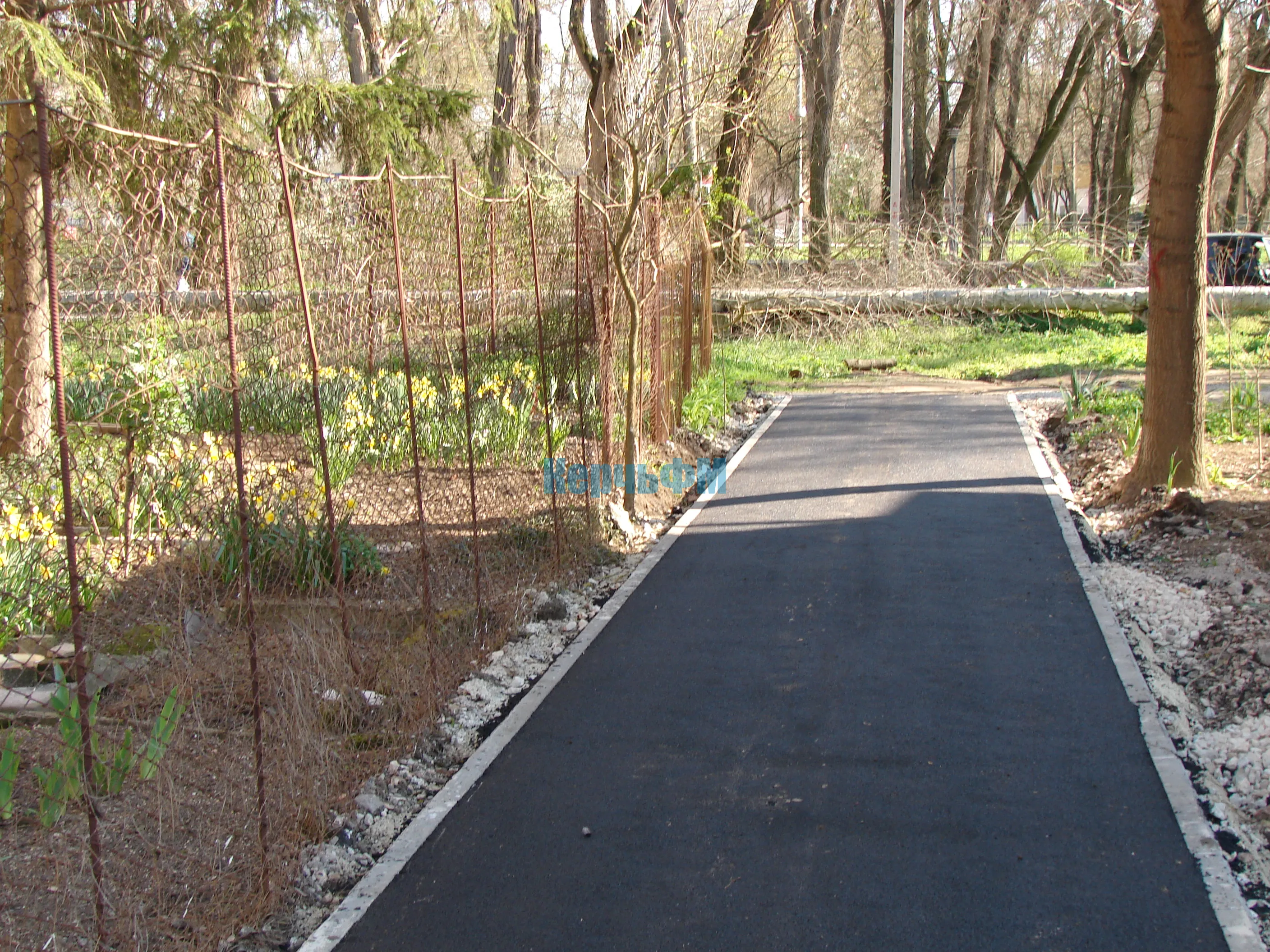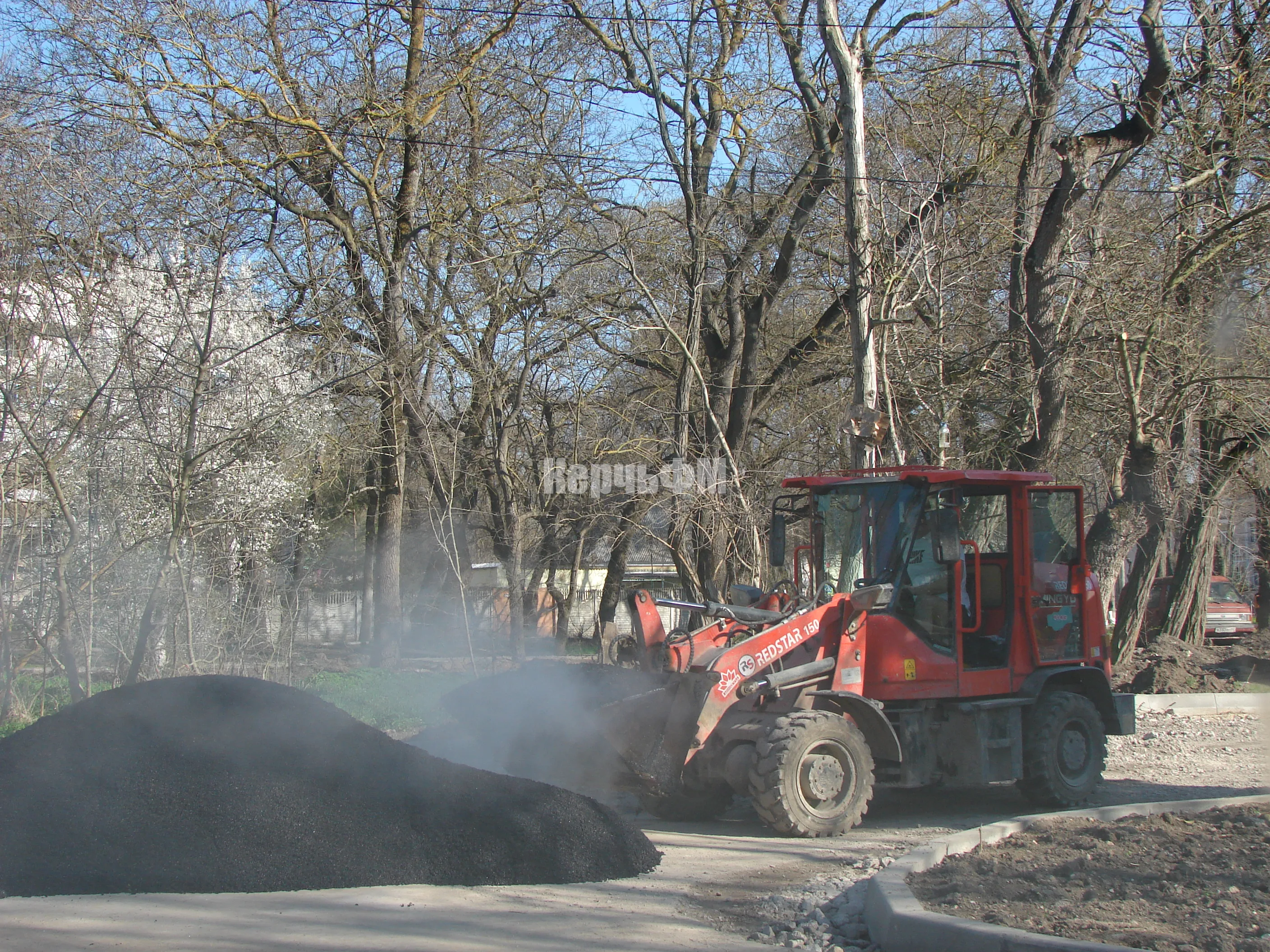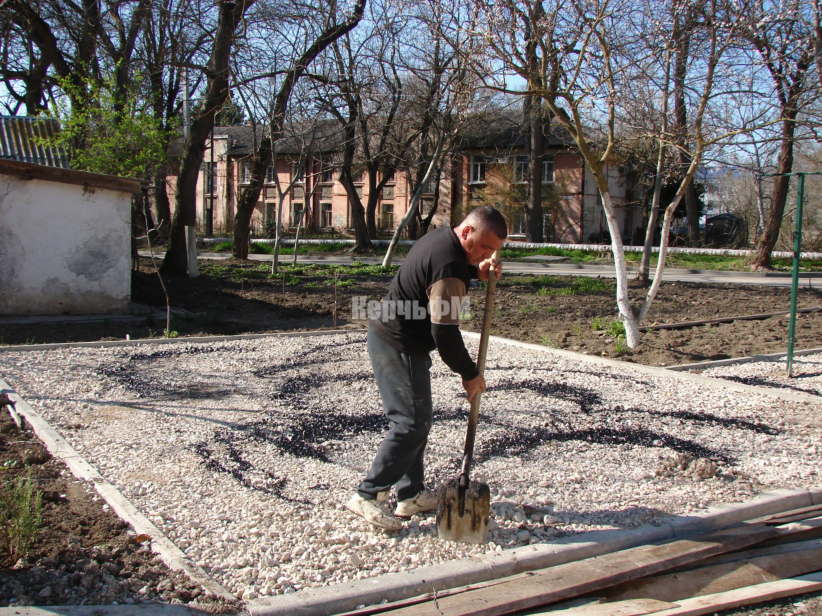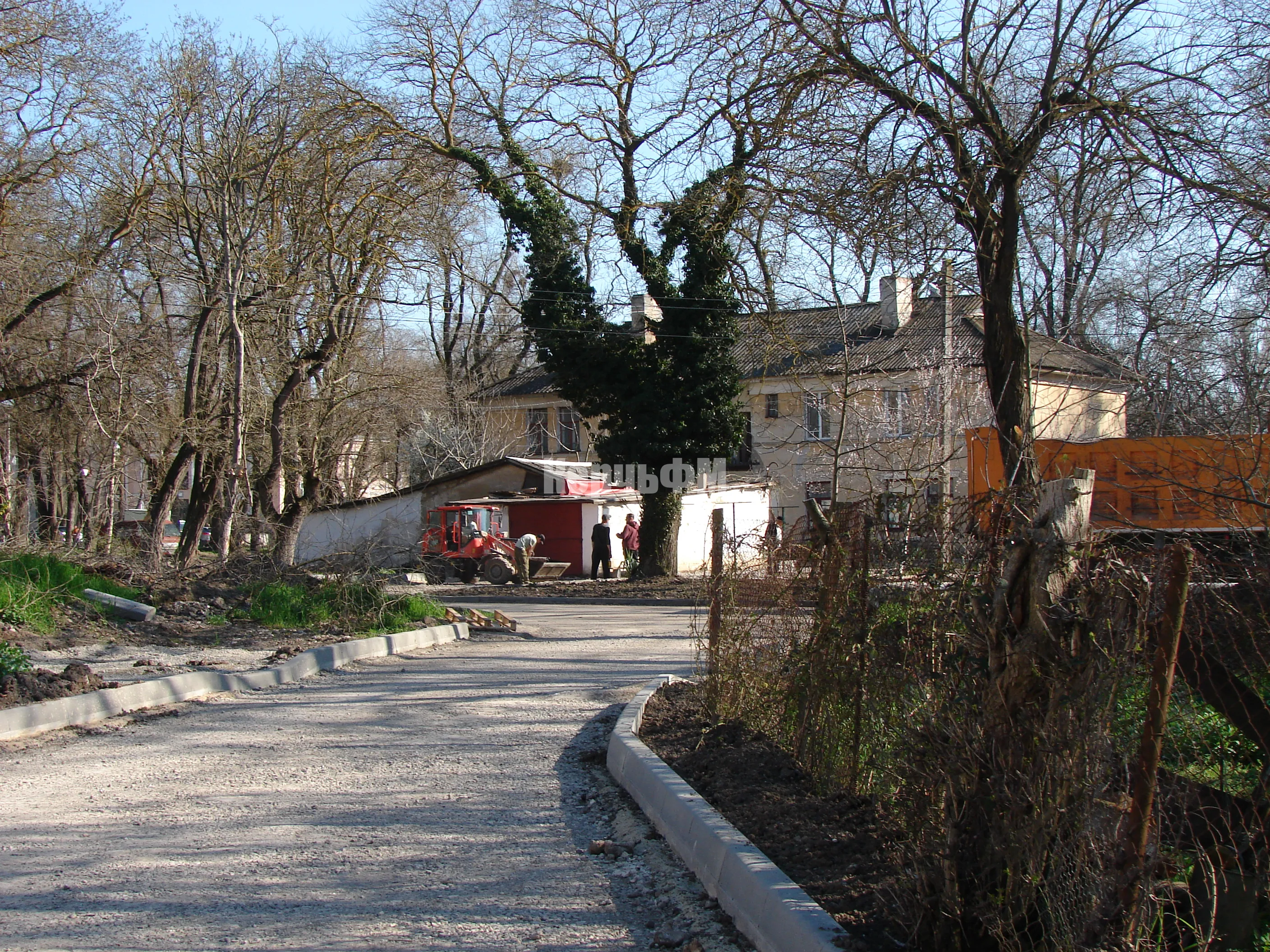 Во дворах МКД района Энгельса, 26 в Керчи асфальтируют пешеходные дорожки