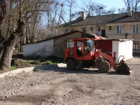 Рабочие подрядной организации "СУ-7", при непосредственном участии Службы городского хозяйства, провели предварительно расчистку дворов от зарослей и кронирование деревьев.