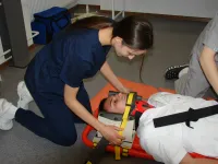 Свои навыки в оказании первой помощи, по сценарию пострадавшему в результате падения с высоты, продемонстрировали студенты.