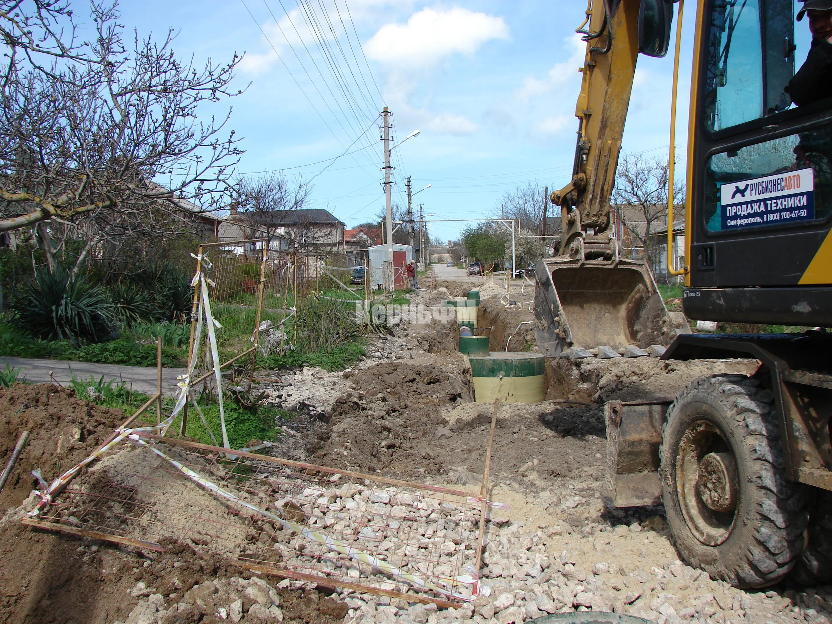 Выполнена укладка в грунт новых труб диаметром 500 мм, а также колодцев.