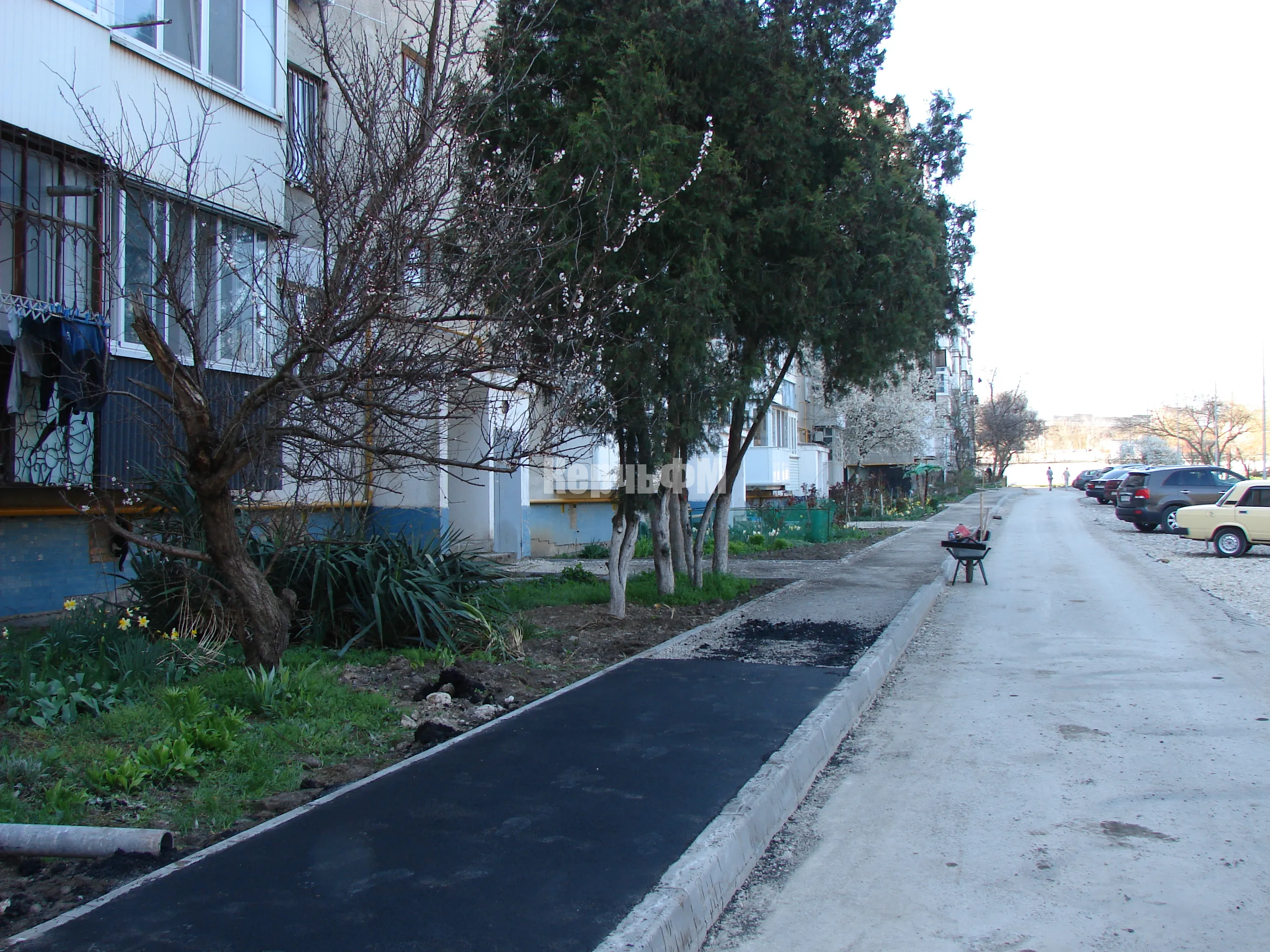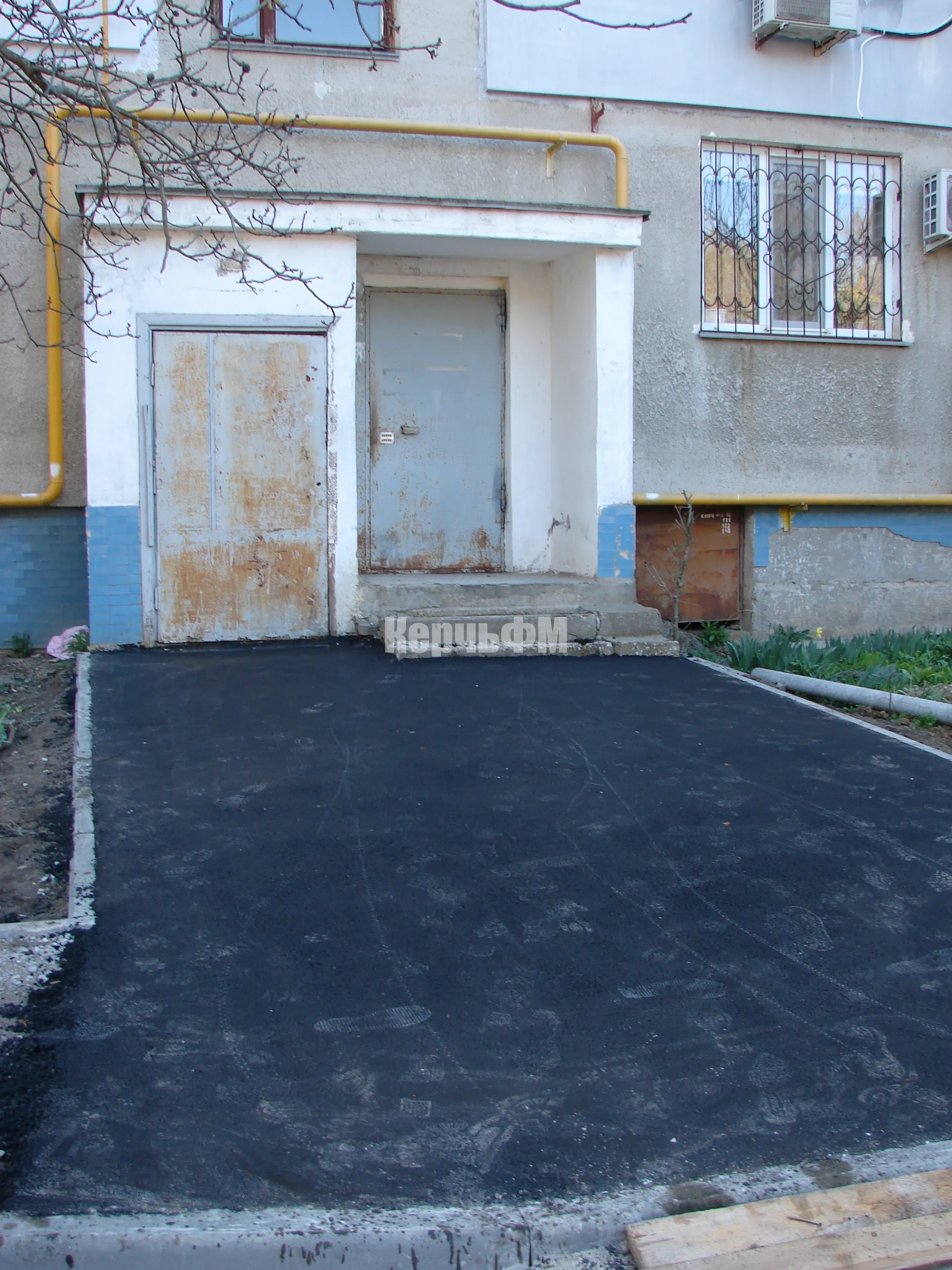 У дома по Суворова, 24 в Керчи начали асфальтировать тротуар
