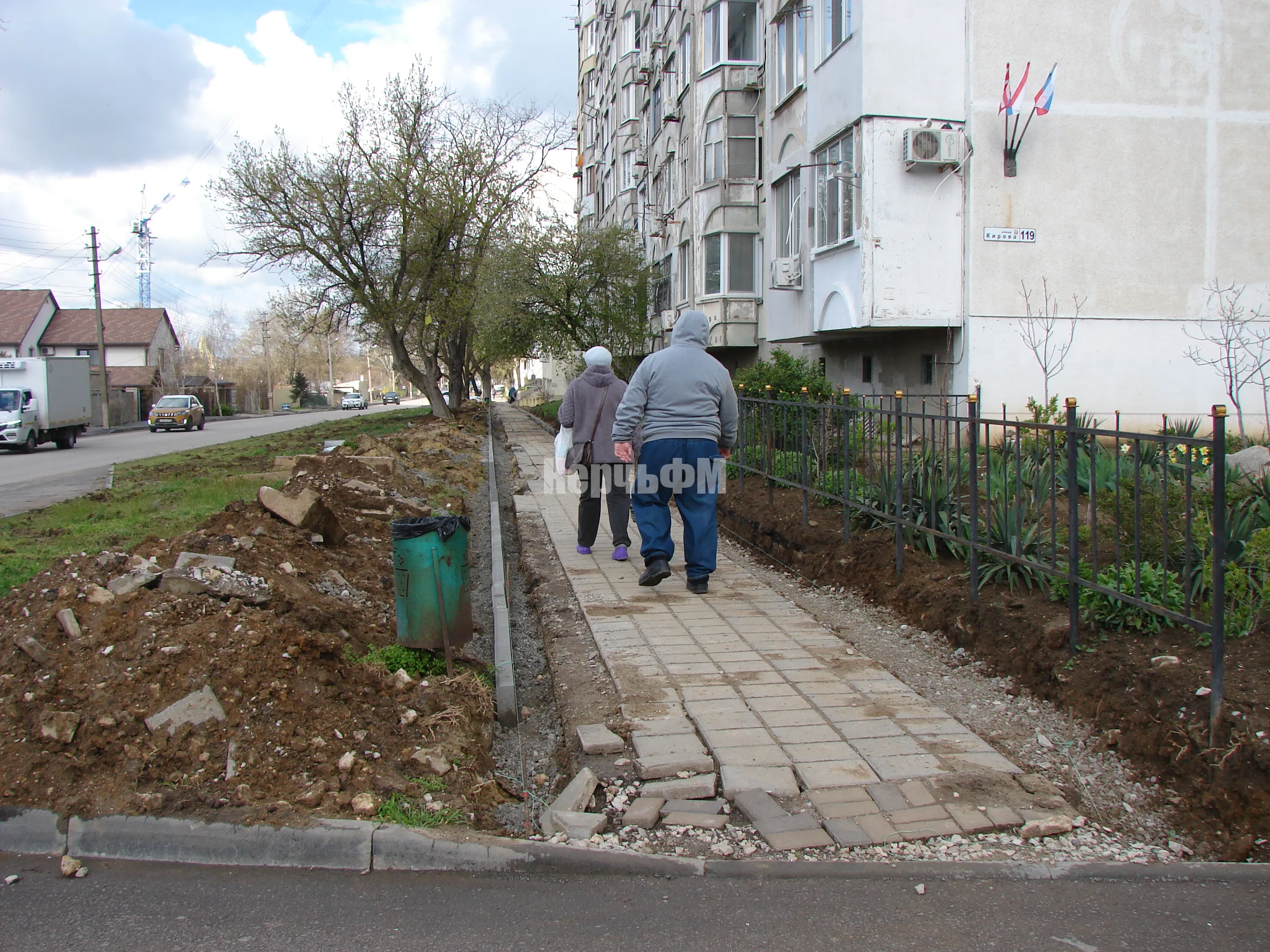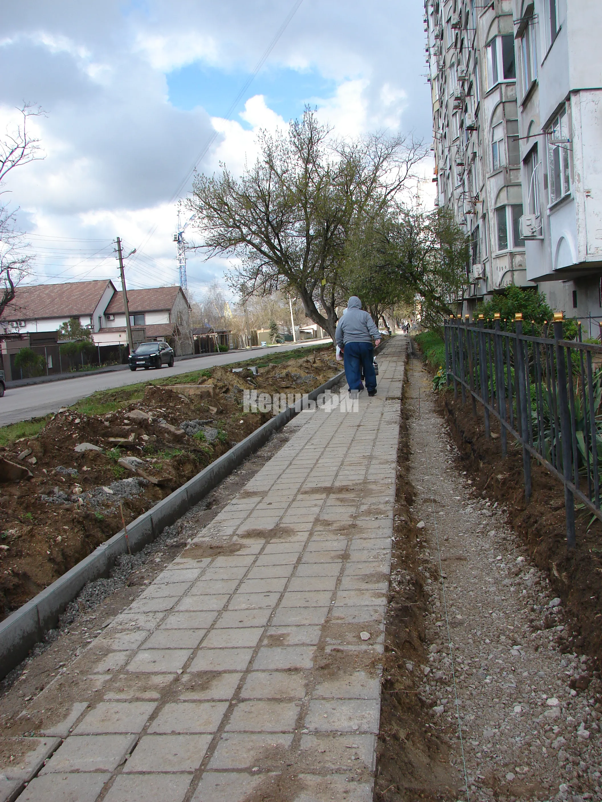По бокам тротуара предварительно была демонтирована старая плитка.