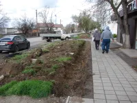 Подрядчик "СТГ-Юг" продолжает капитальный ремонт тротуаров вдоль улицы Кирова.