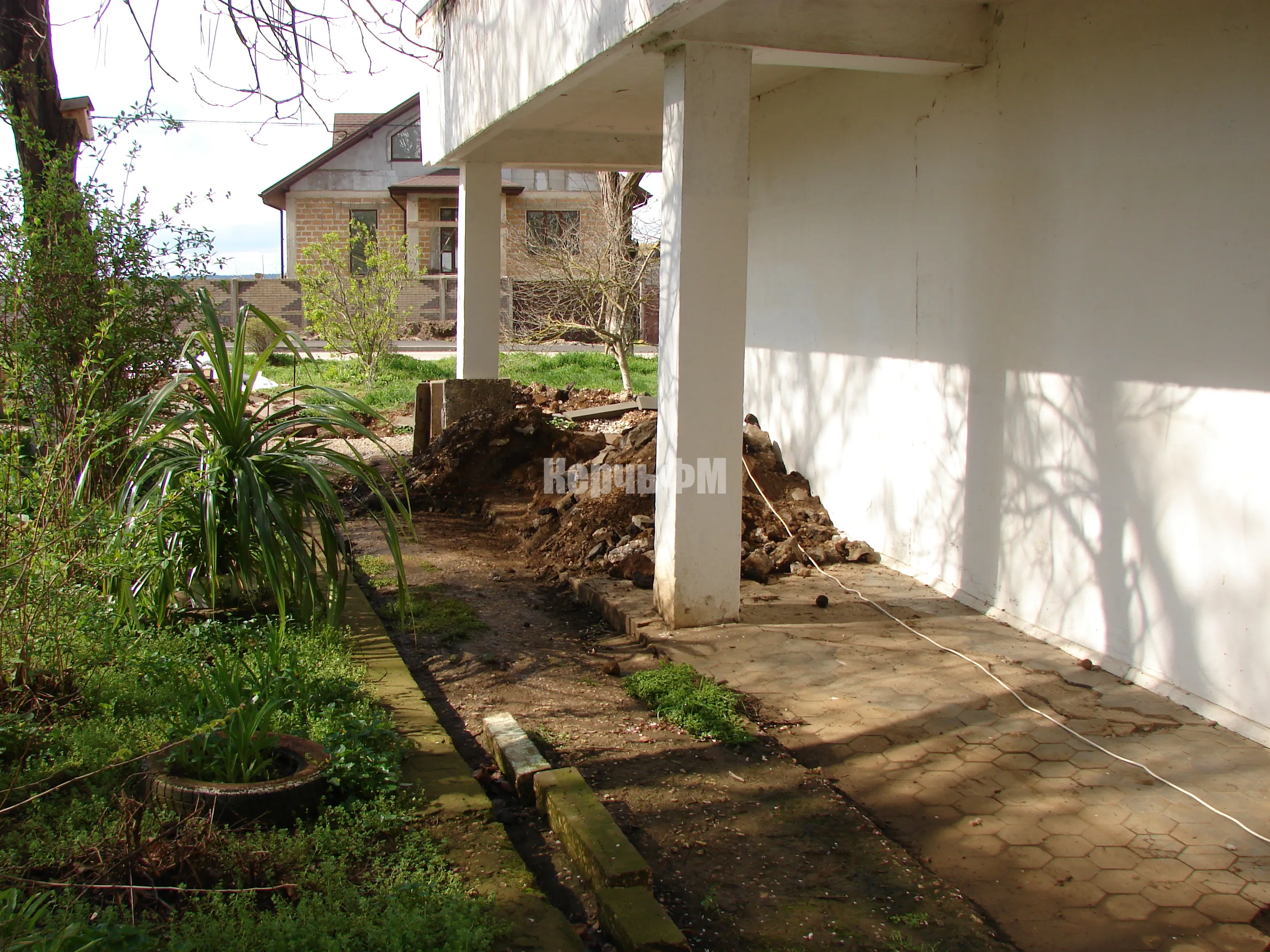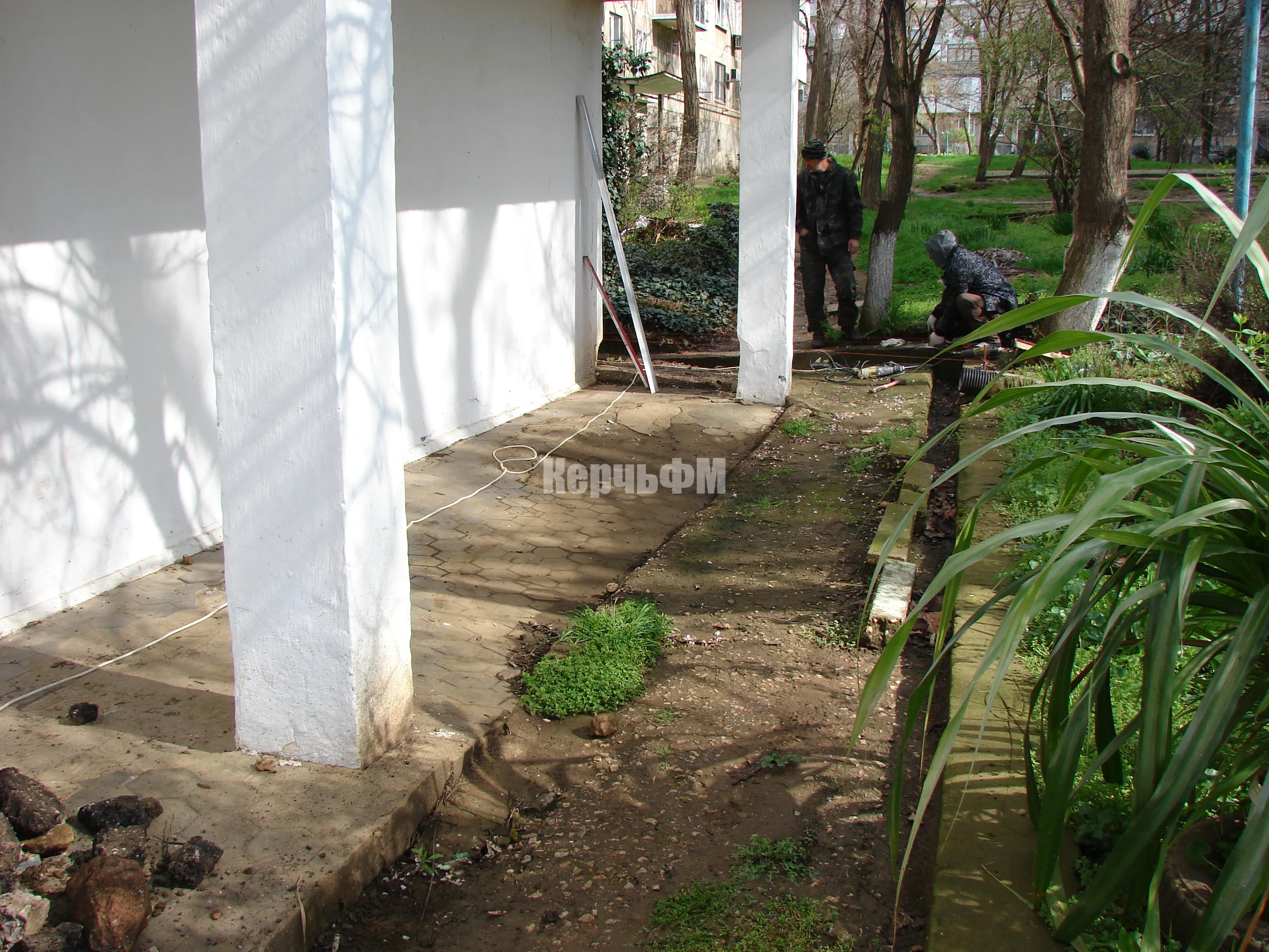 У библиотеки-филиала №2 в Керчи делают отмостки и ливневку с подпорной стеной