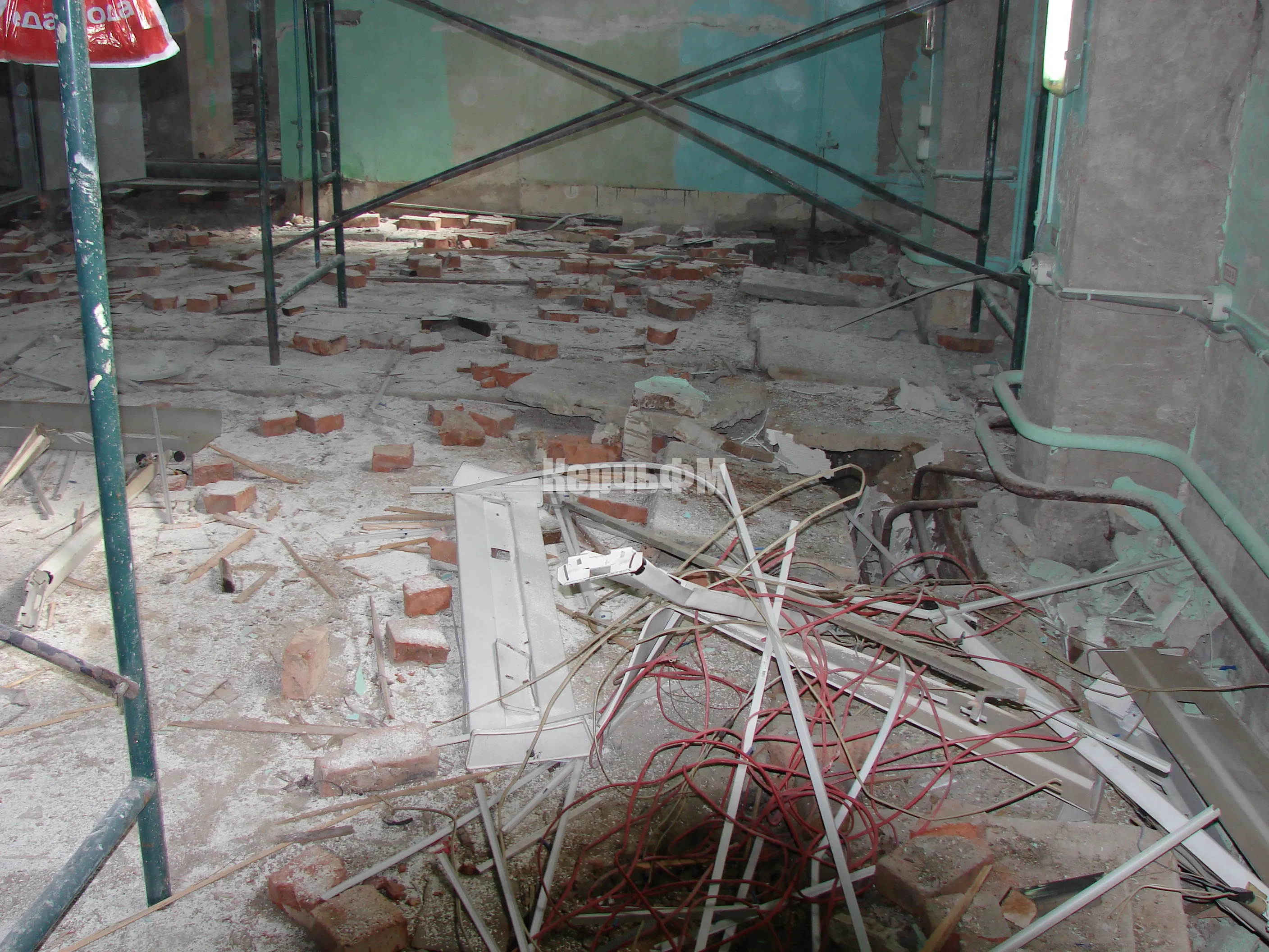 Напомним, ранее был выполнен демонтаж деревянных прогнивших полов и зачистка стен.