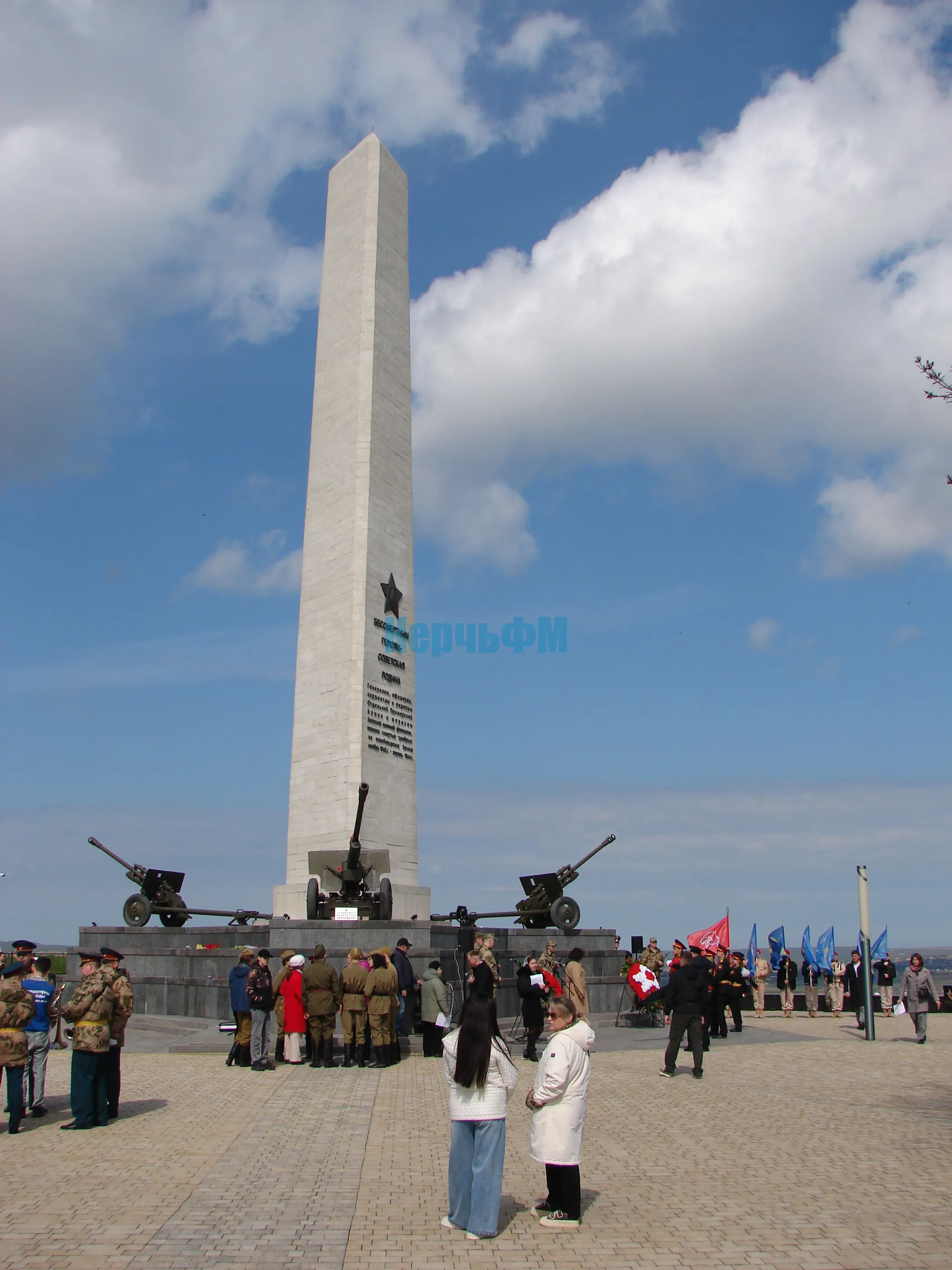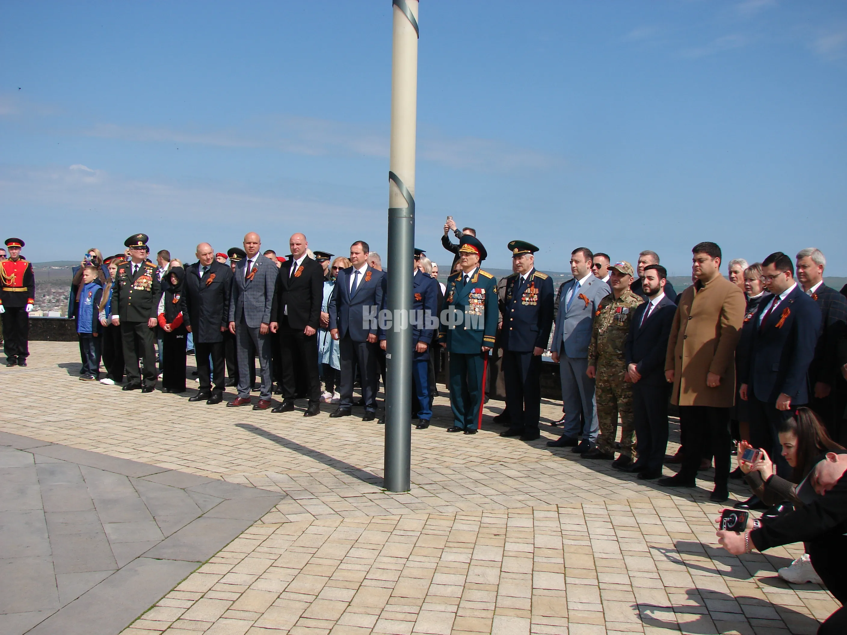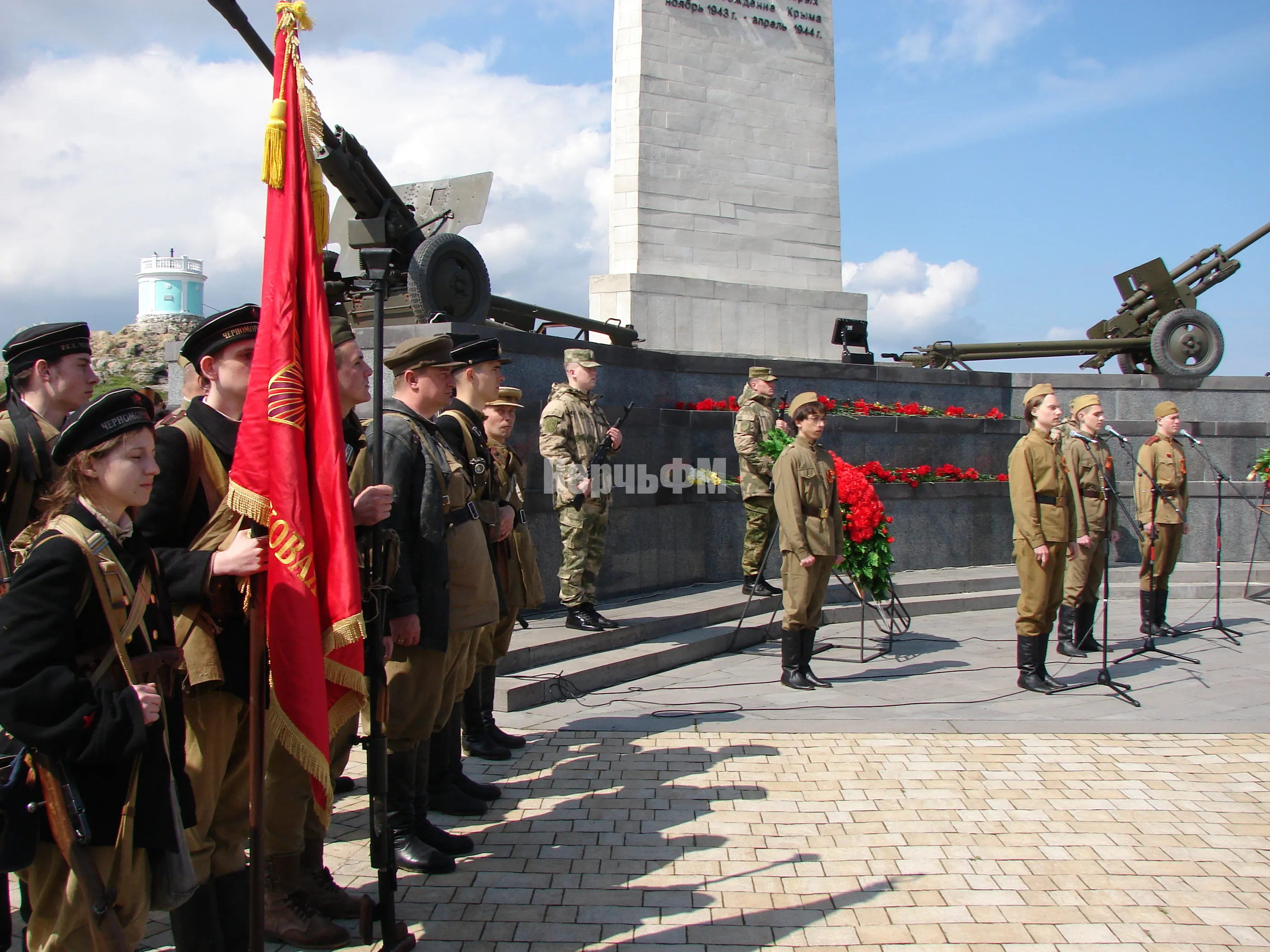 Во время церемонии на горе Митридат состоялось открытие Вахты Памяти, поднятие Копии Знамени Победы и проведение акции "Дорогами Освободителей", передает КерчьФМ.