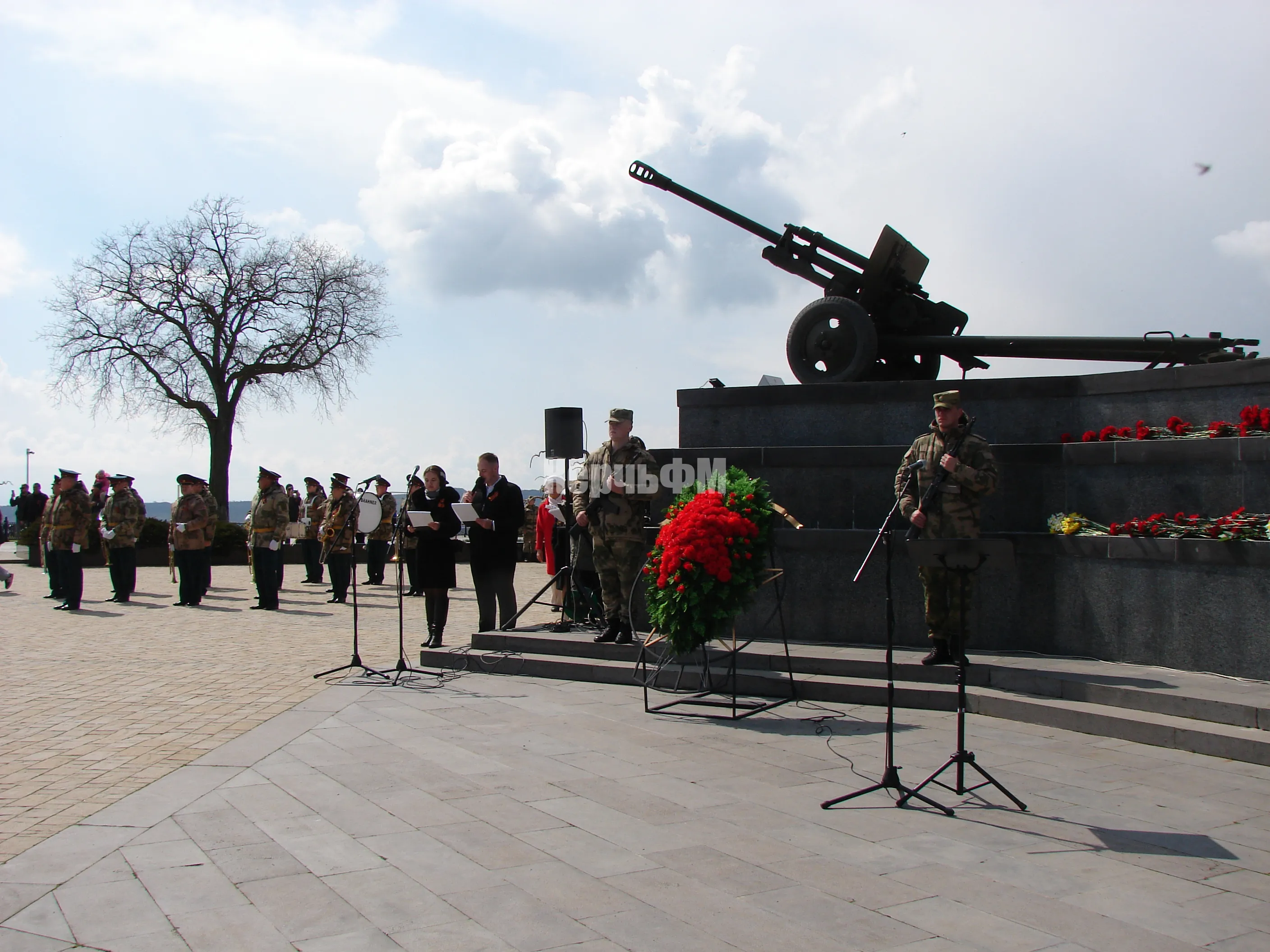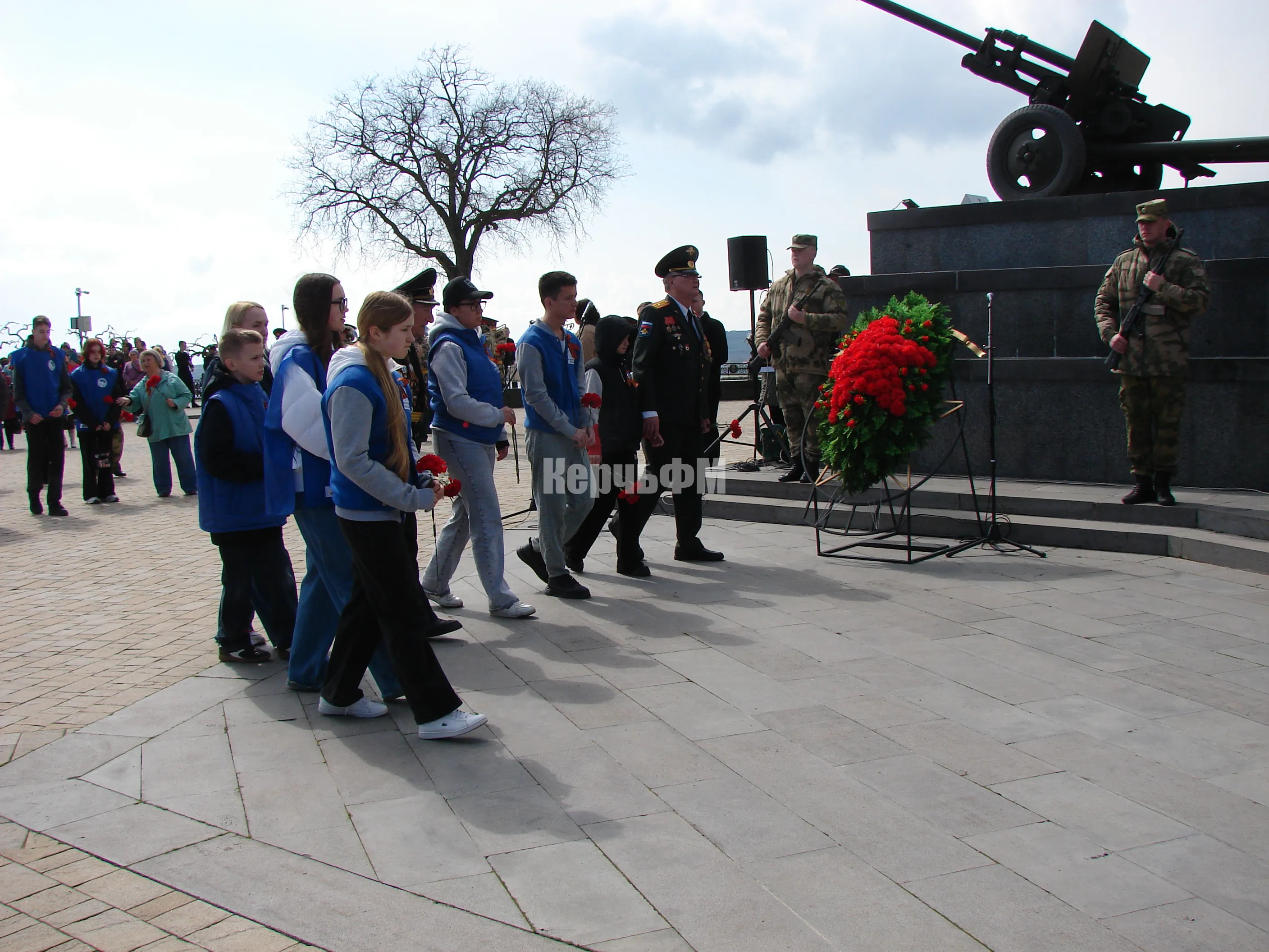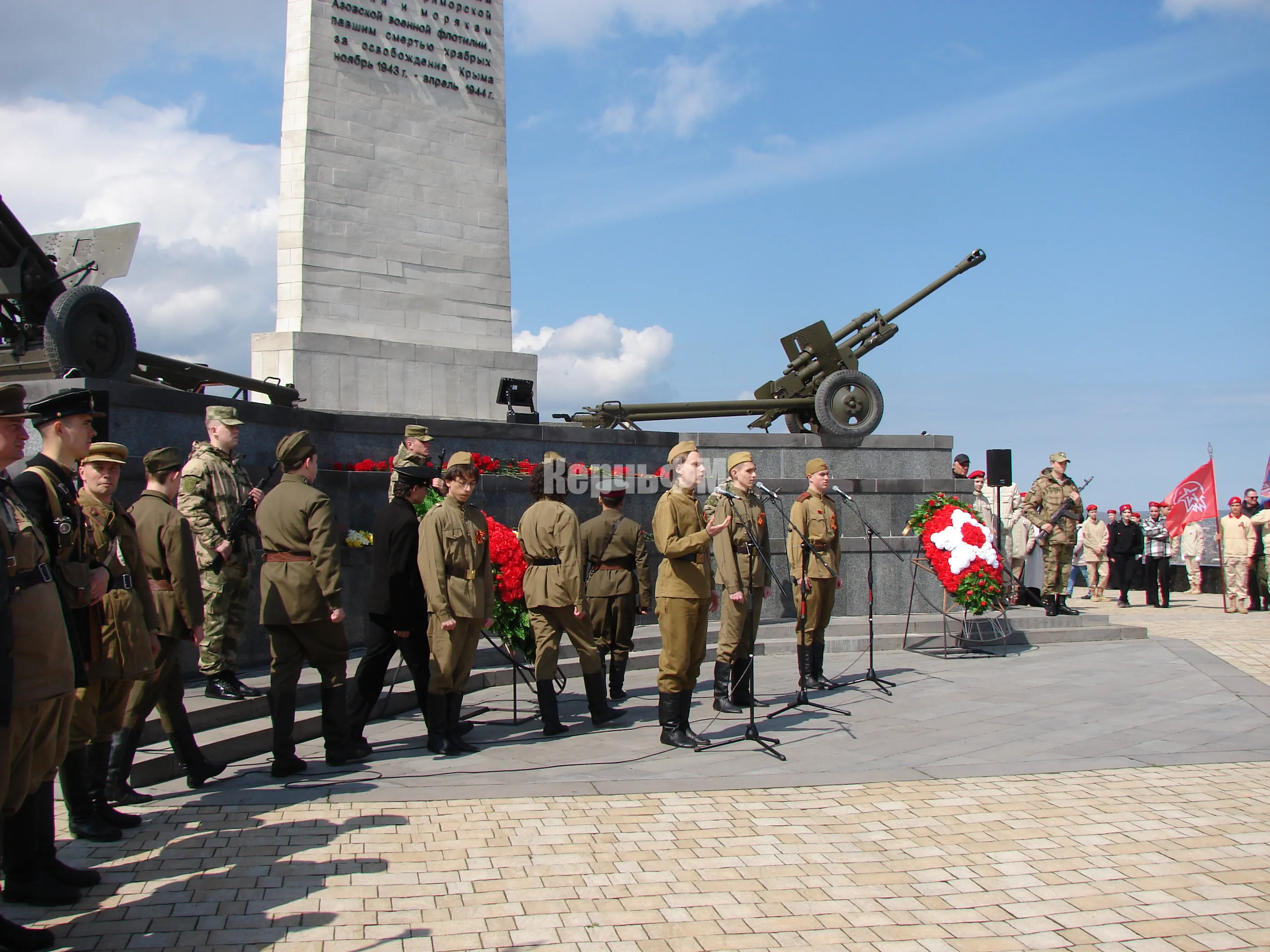 Во время церемонии на горе Митридат состоялось открытие Вахты Памяти, поднятие Копии Знамени Победы и проведение акции "Дорогами Освободителей", передает КерчьФМ.