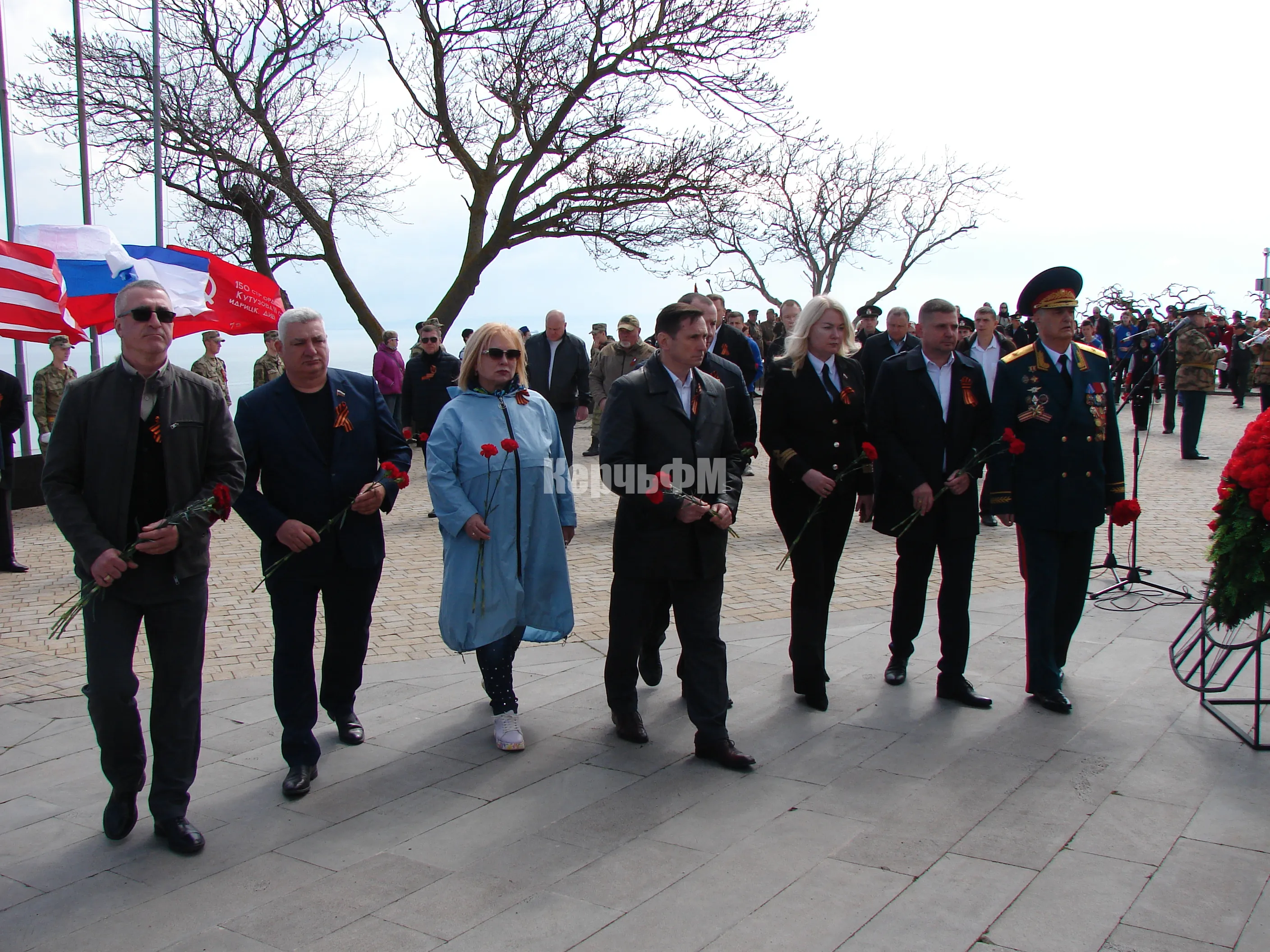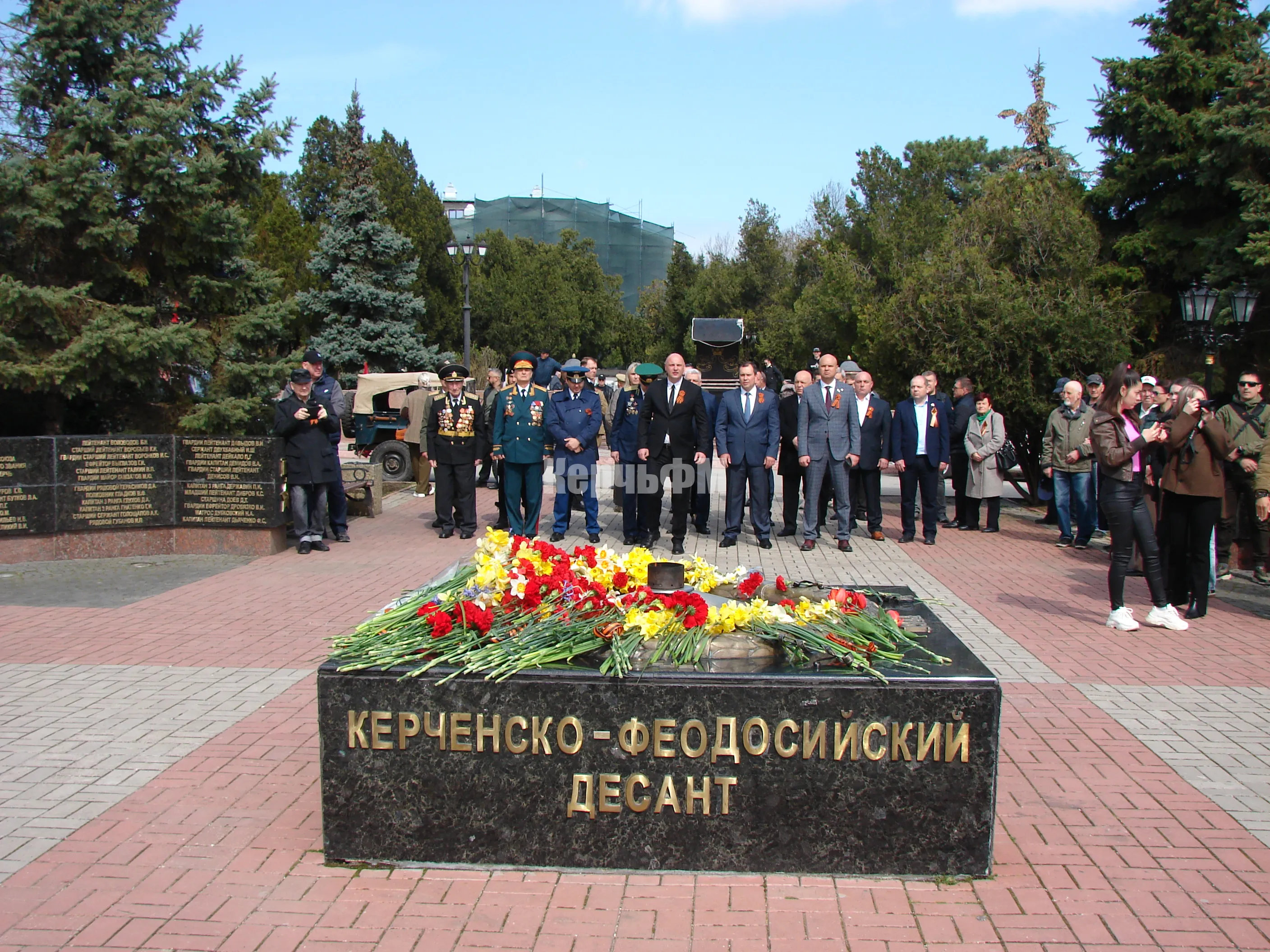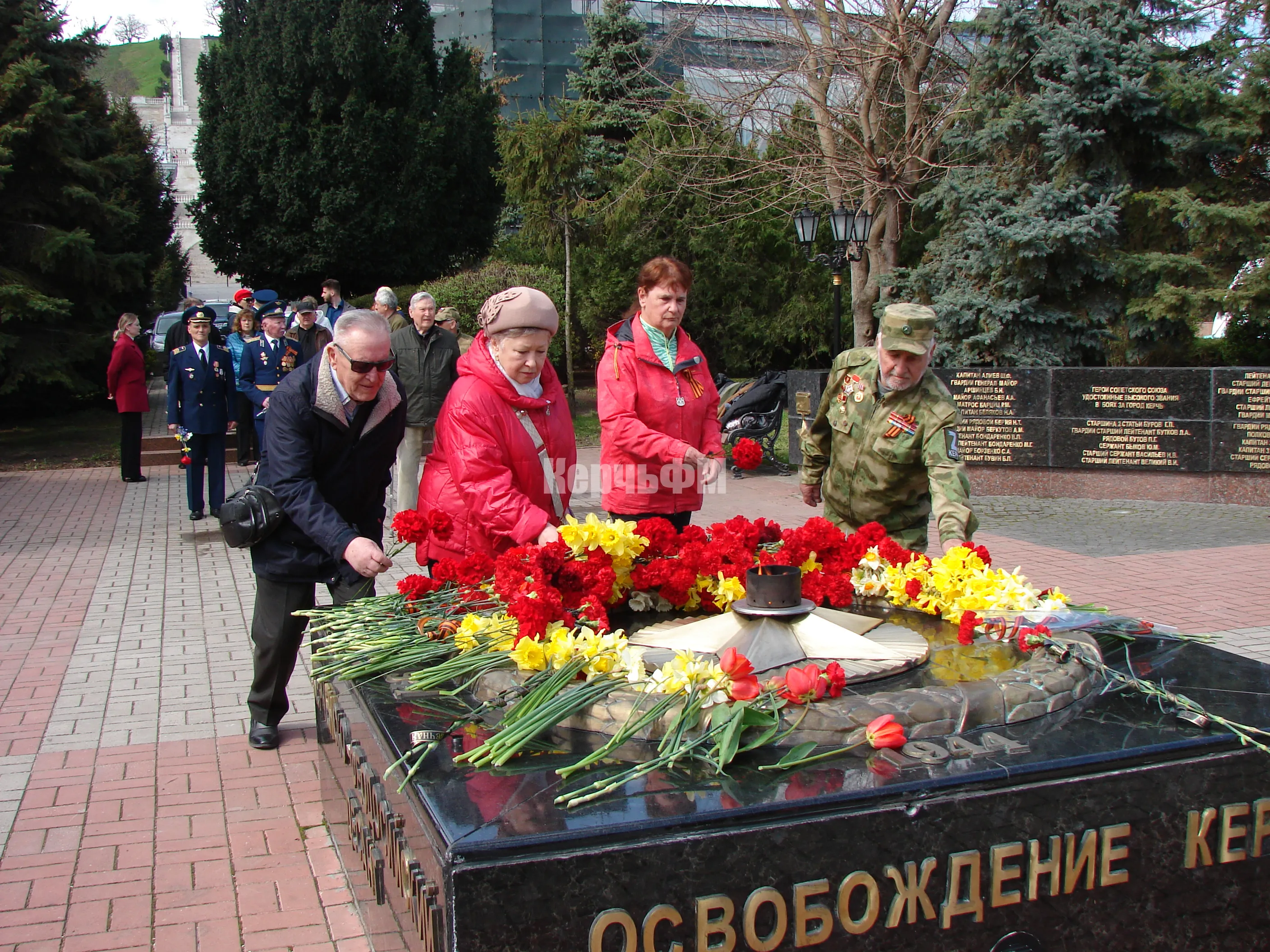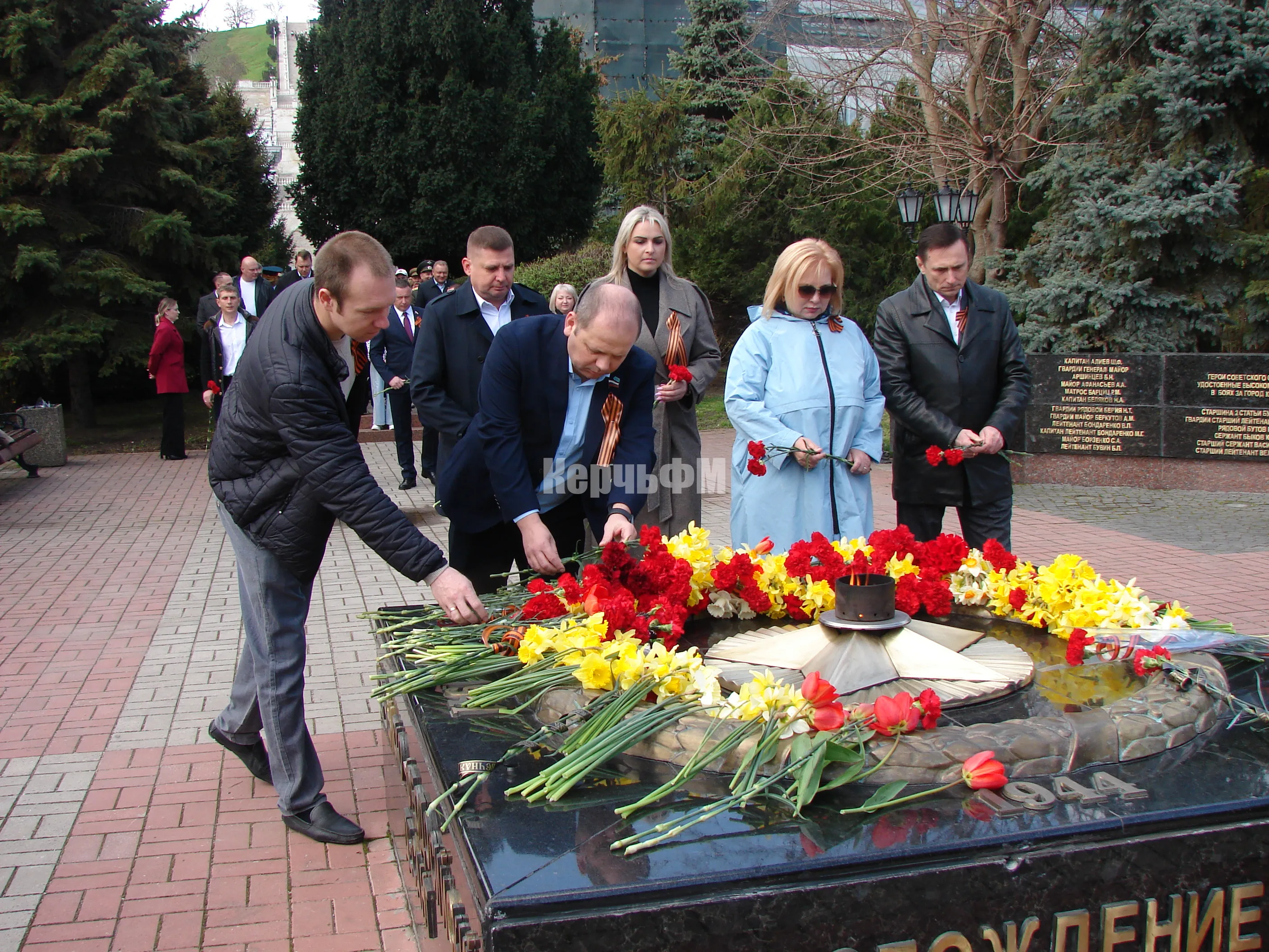 Сегодняшнее утро началось для руководителей города, представителей депутатского корпуса, ветеранских и молодежных организаций, керчан с возложения цветов к Вечному огню.