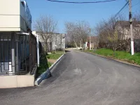Асфальт уложен и за зданием на первой части дороги, ведущей к дачным участкам.