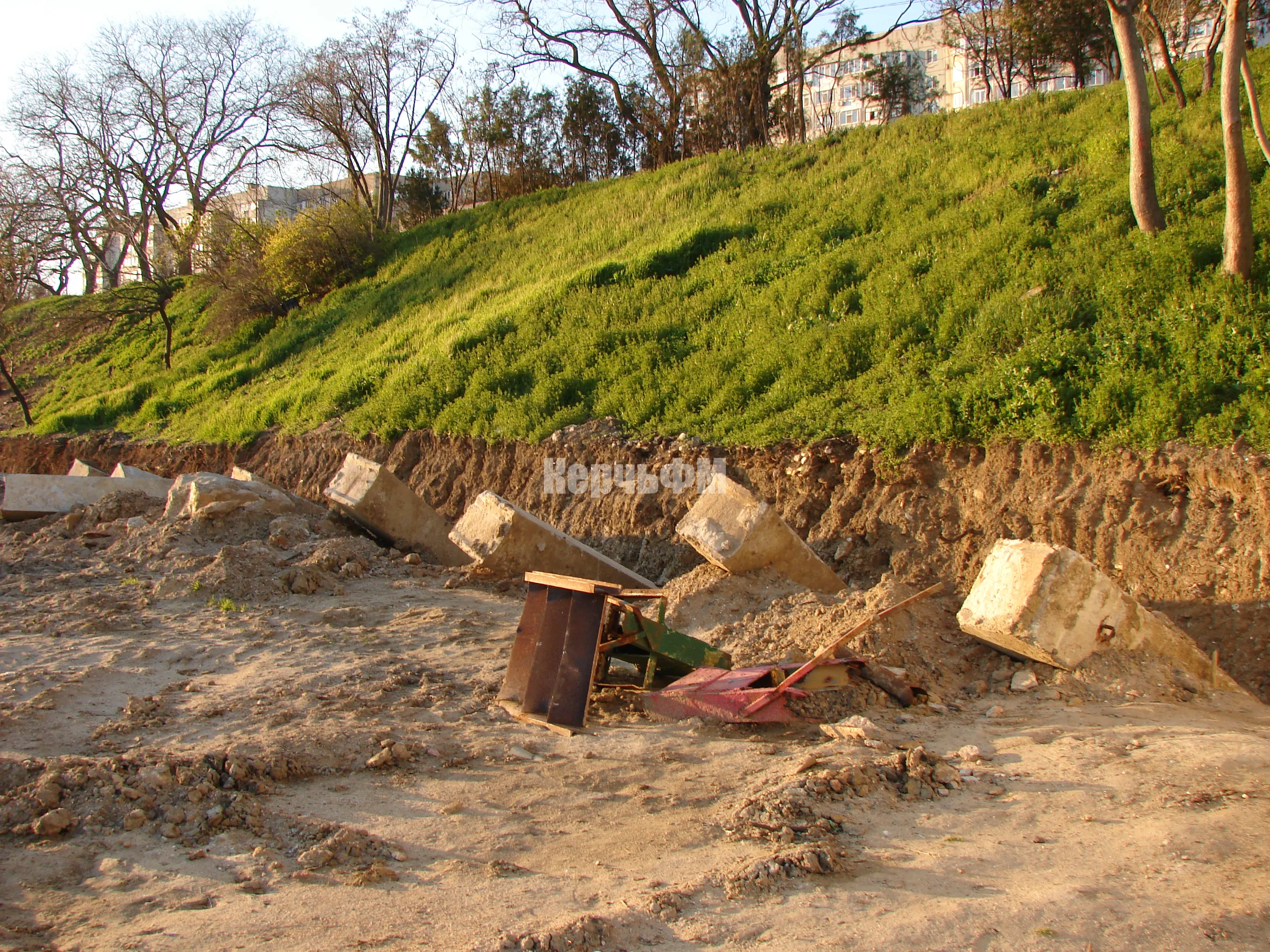 Отметим, что часть берега буквально завалена обломками бетона, и вывозить их не спешат, передает КерчьФМ.