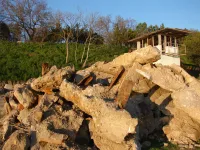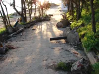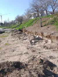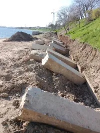 К нему добавились и столбики с бетонными основаниями на спуске к морю, где раньше были ограждения из металлических цепей.