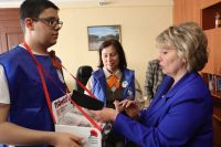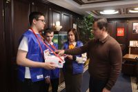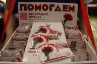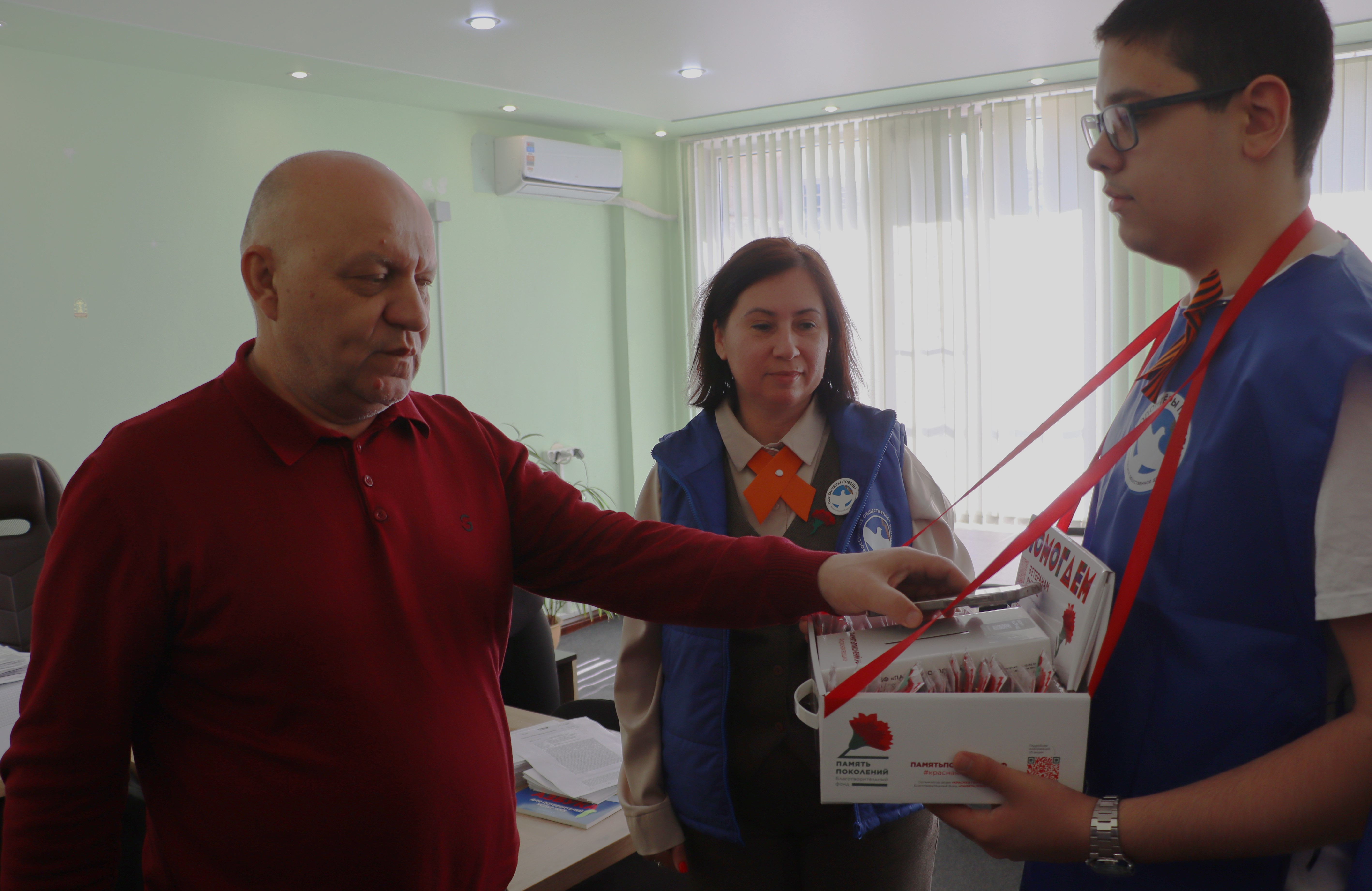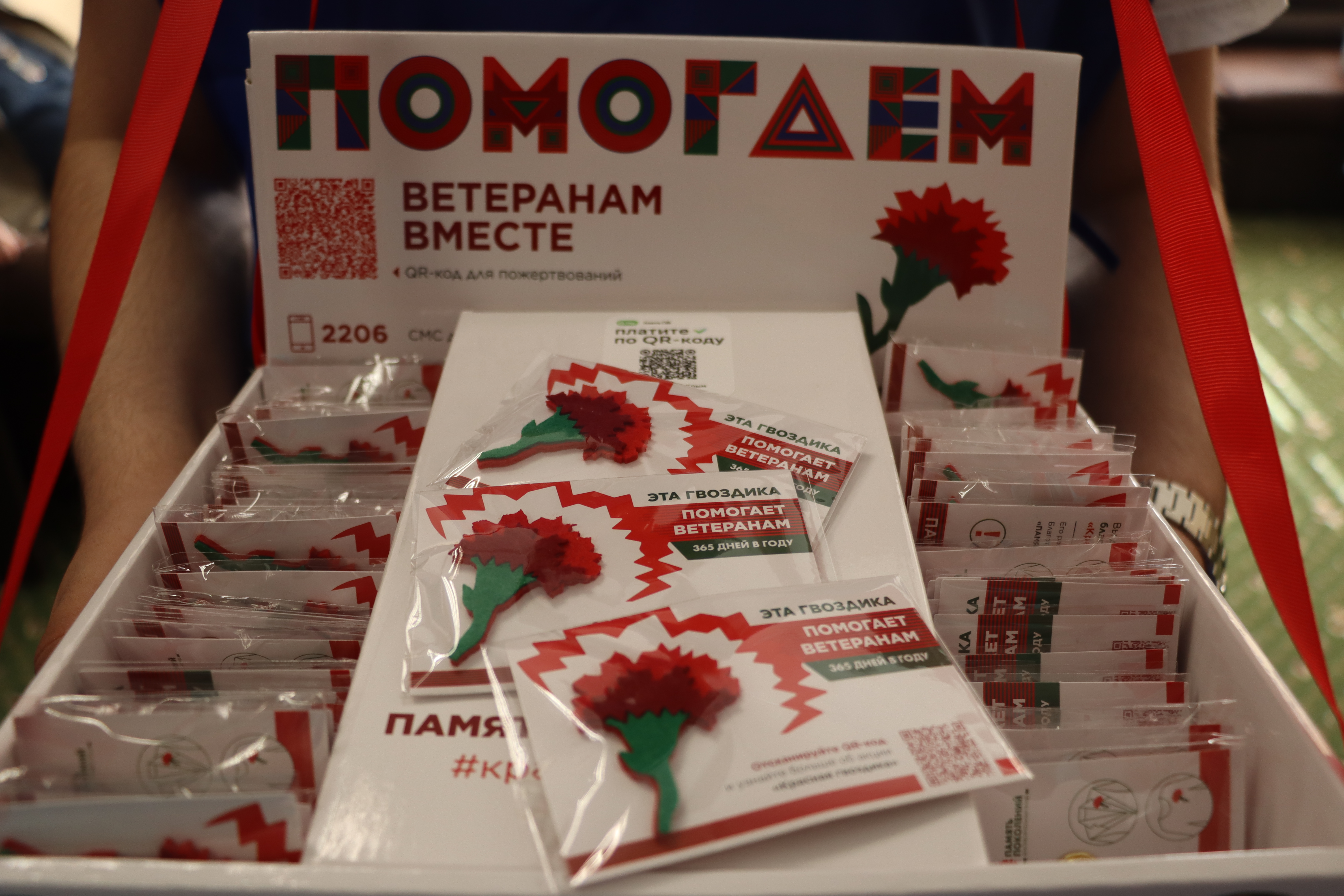 За символическое пожертвование каждый желающий приобрел у активистов движения «Волонтеры Победы» значок с изображением красной гвоздики.