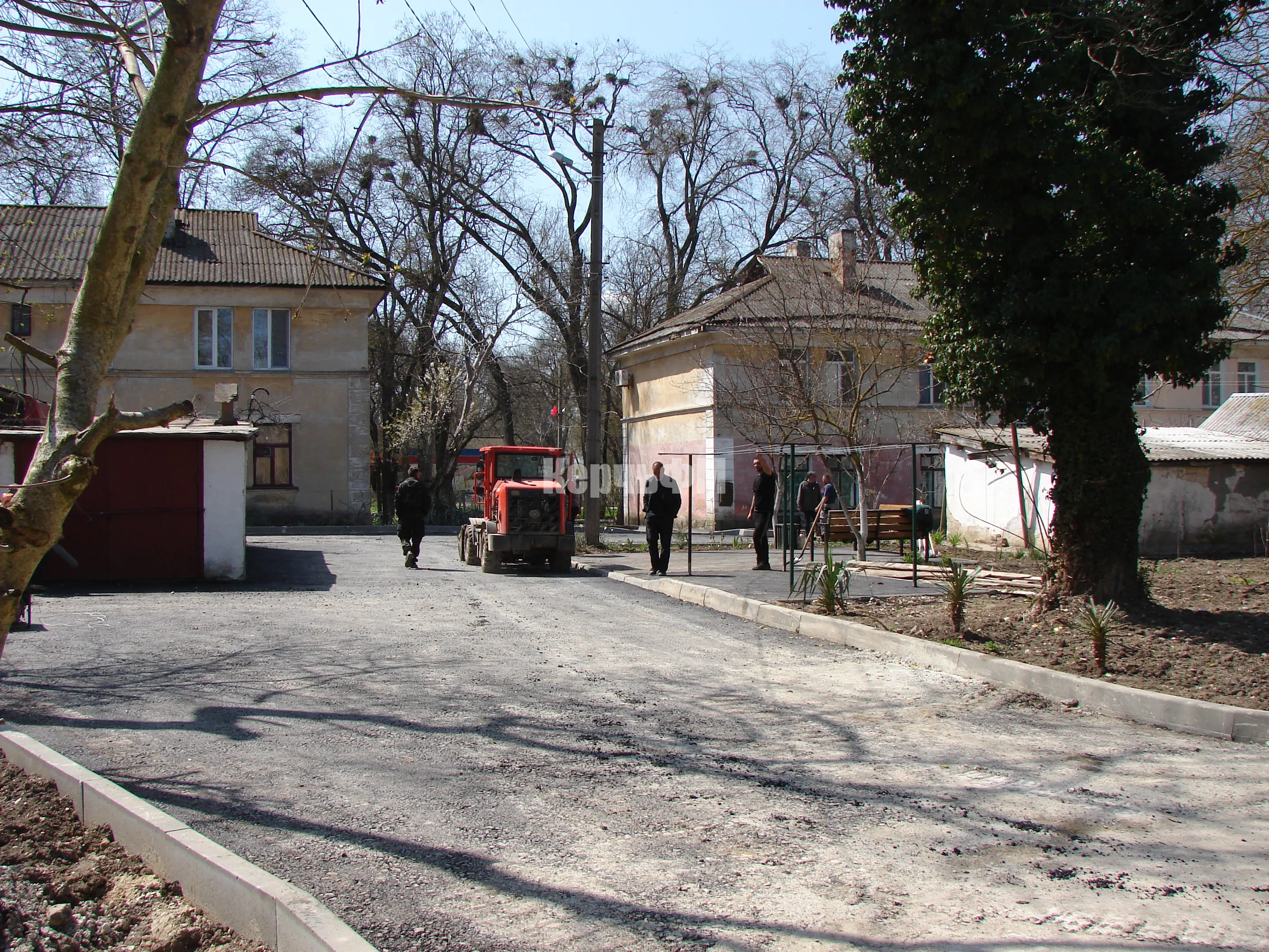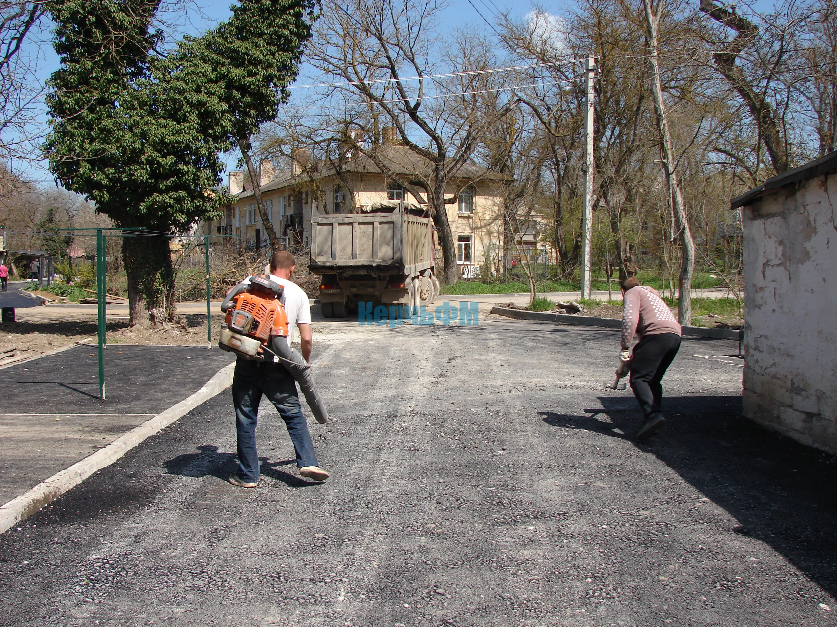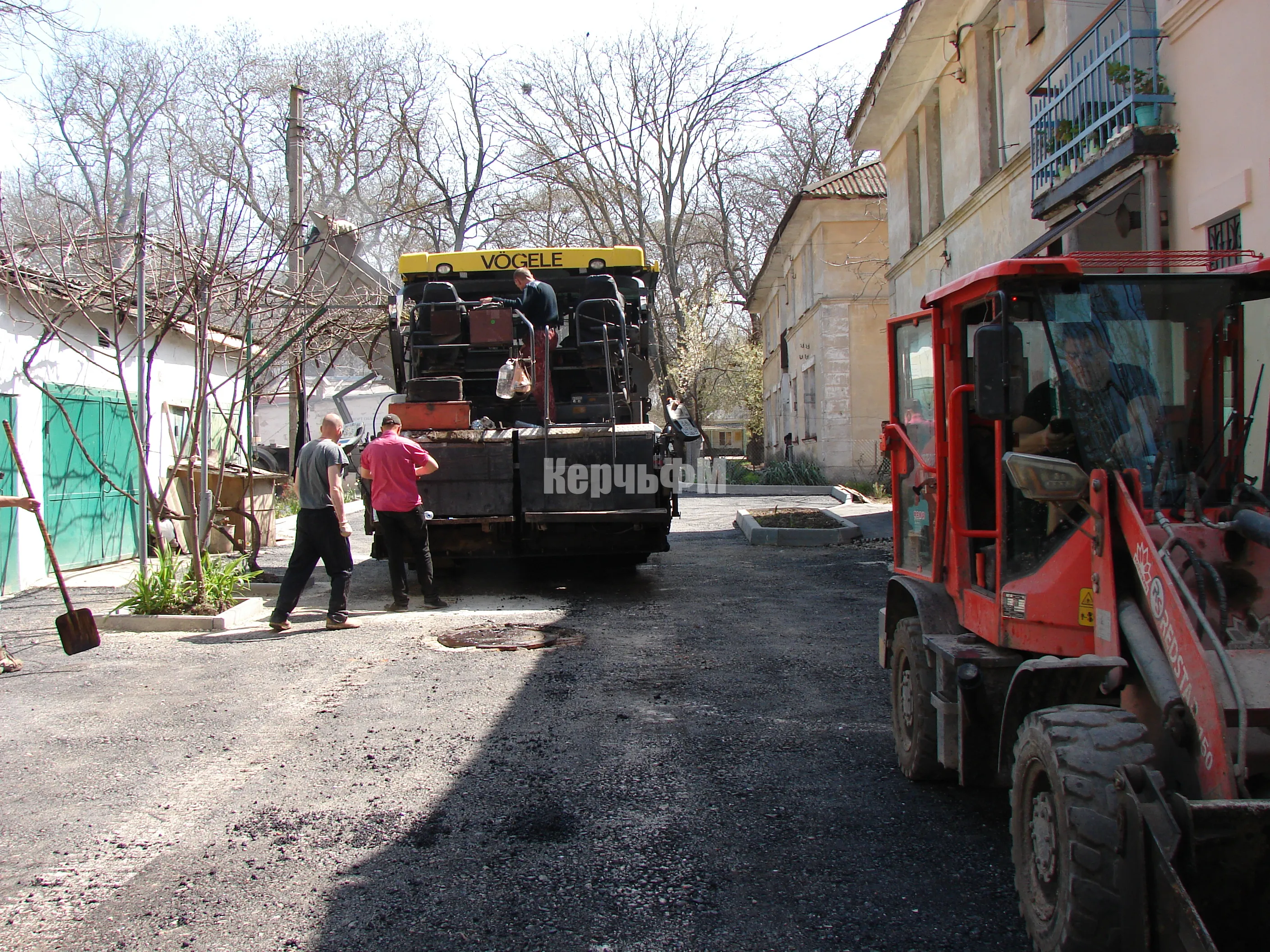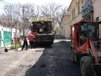 Во дворах по Войкова, 20, 22, Энгельса, 26 в Керчи укладывают второй слой асфальта