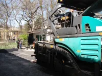 Сегодня подрядная организация "СУ-7" ведет укладку второго слоя асфальта во дворах и на заездах во дворы.