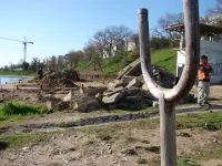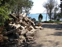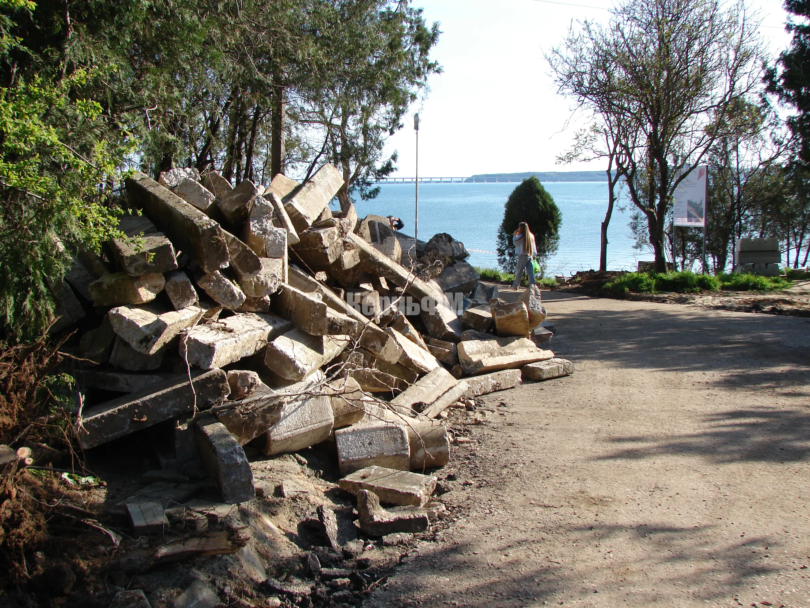 Часть бетонных демонтированных конструкций вывезена, но их еще здесь предостаточно.