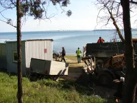 На зоне отдыха Сморжевского в Керчи появились вагончики строителей