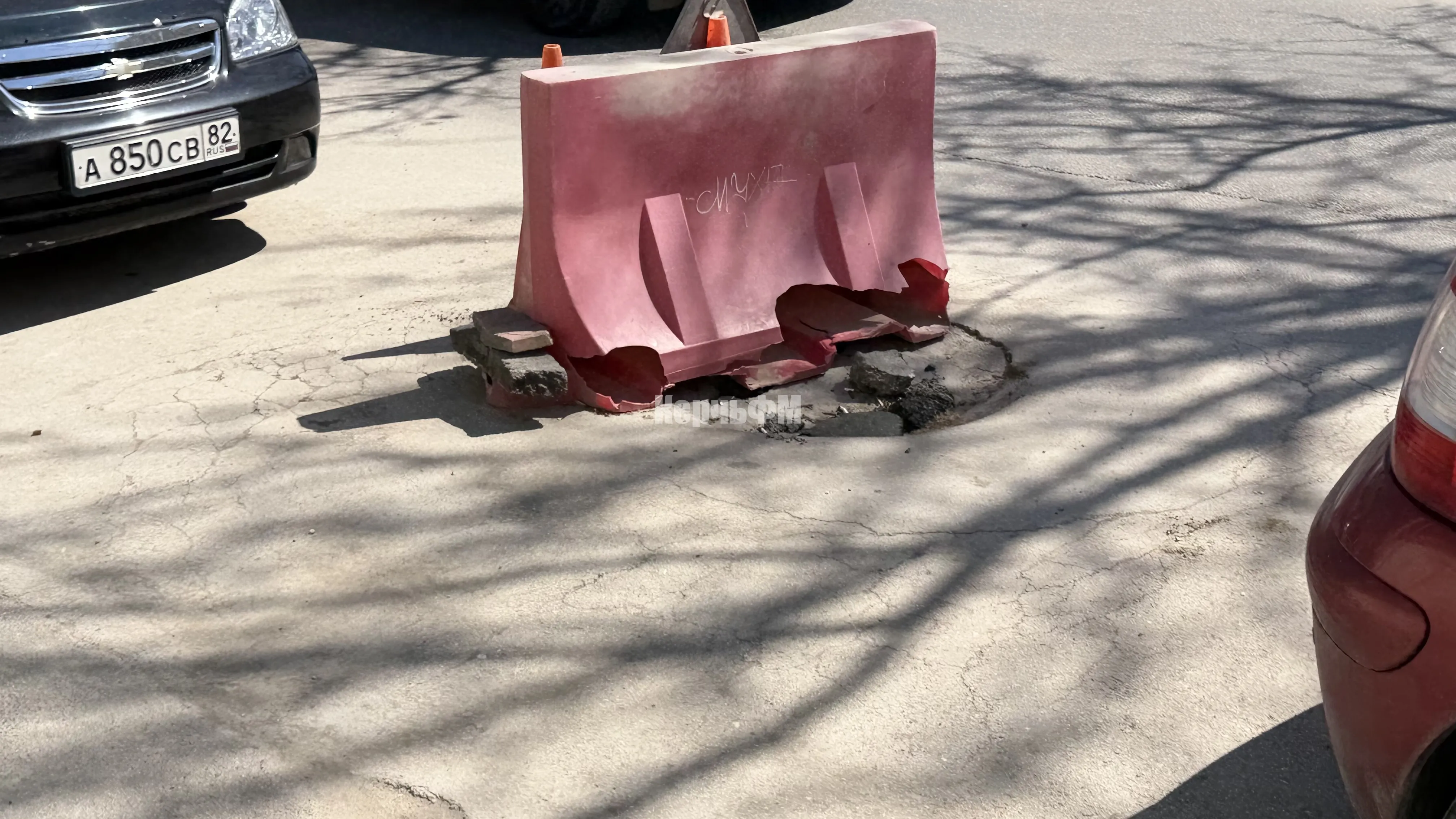 Место до сих пор ограждено пластиковым барьером и дорожным знаком. Вот только отремонтировать проезжую часть никто не спешит.