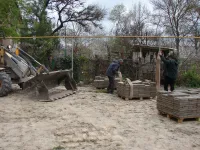 Сейчас внимание устроителей сосредоточено на обустройстве тротуаров и установке поребриков, как вдоль пешеходных дорожек, так и вдоль подъездных дорог, ведущих непосредственно к домам.