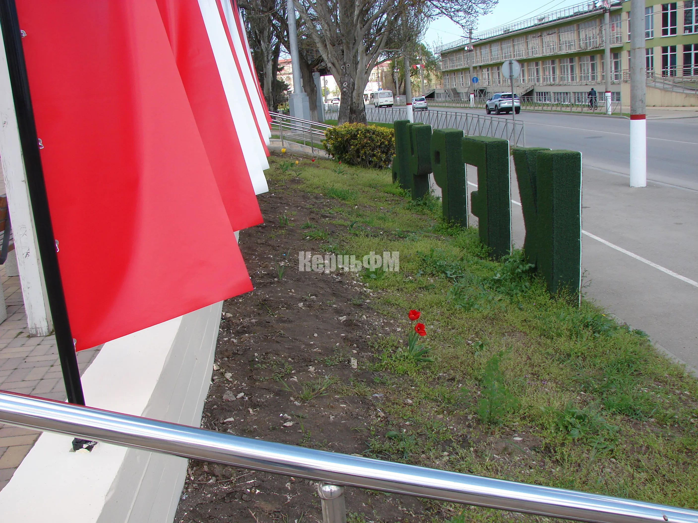 Напомним, инсталляцию «Город‑герой Керчь» оформили красно‑белыми полотнами в цветах городского флага перед 82-ой годовщиной освобождения Керчи от фашистских захватчиков.
