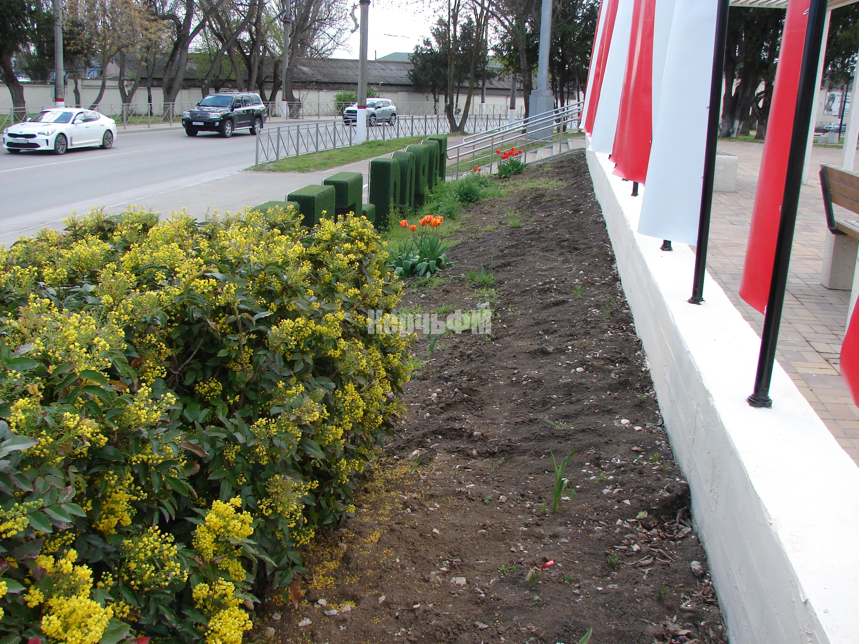 Но, на газоне за инсталляцией "Город-герой Керчь", расположенной перед колоннадой на центральной площади города, сегодня растут лишь несколько отдельных цветов, передает КерчьФМ.