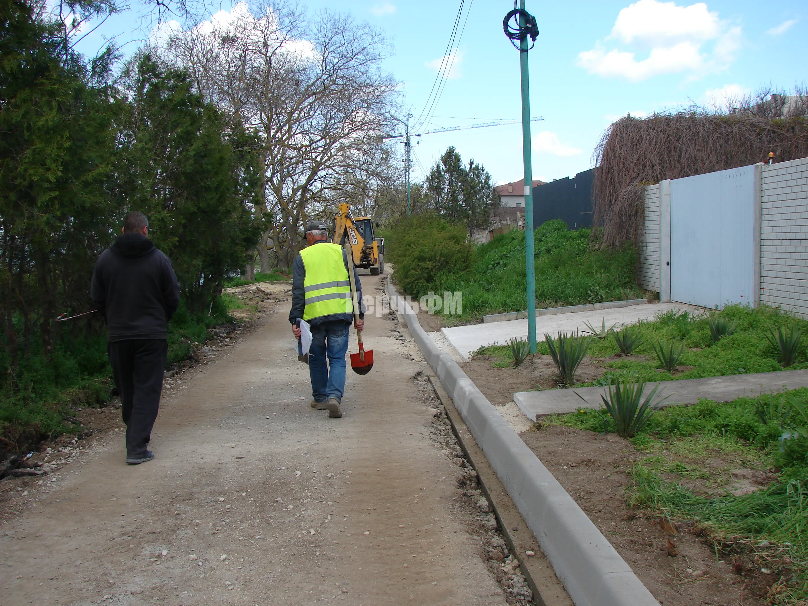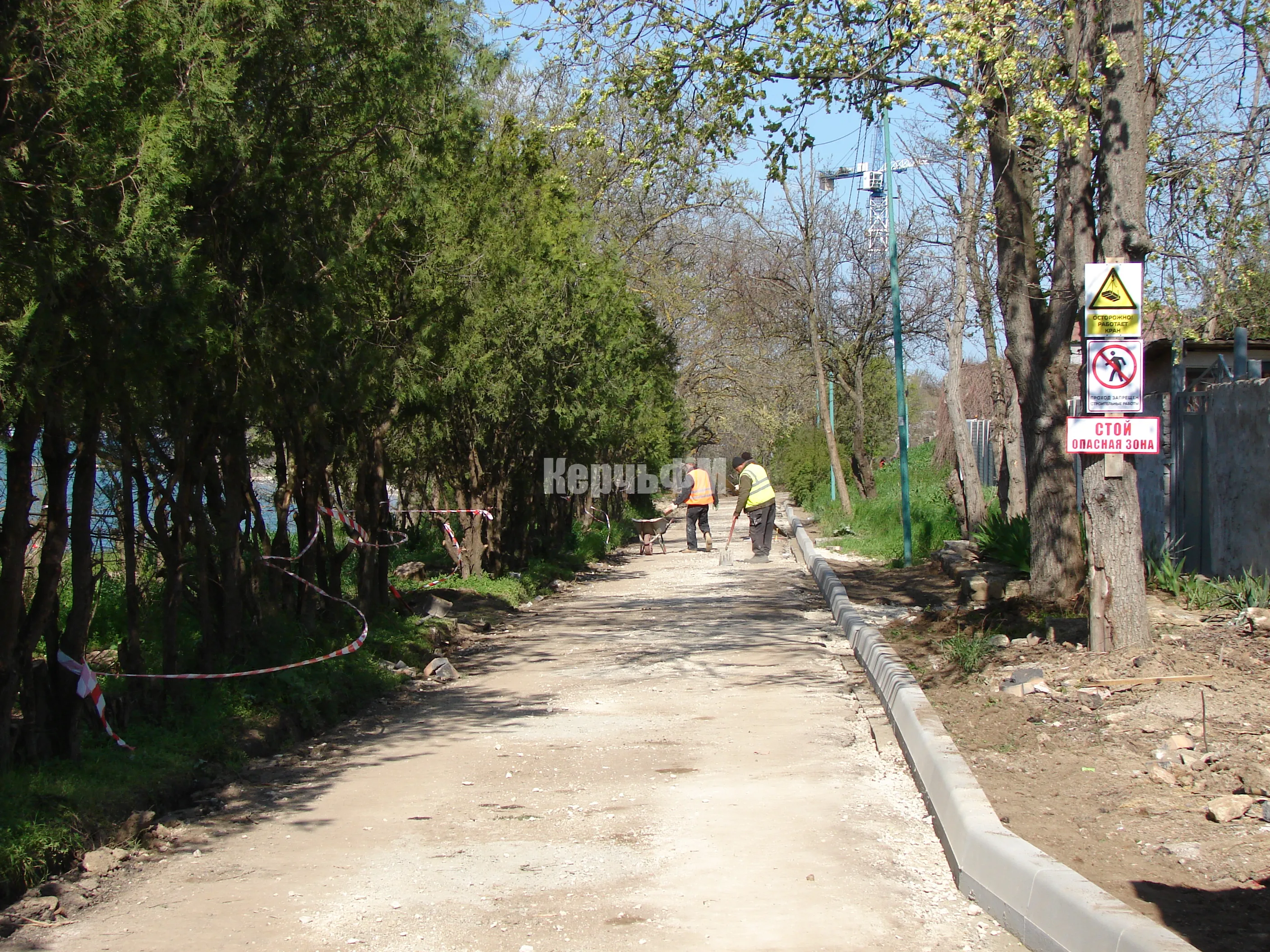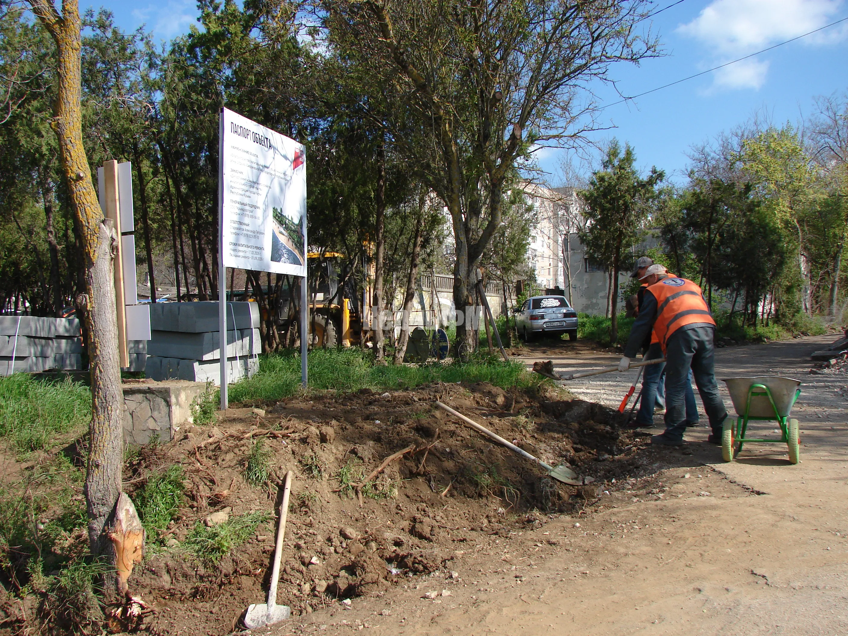 Сегодня рабочие продолжают готовить траншеи под бордюрный камень на спуске к морю.