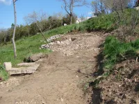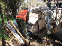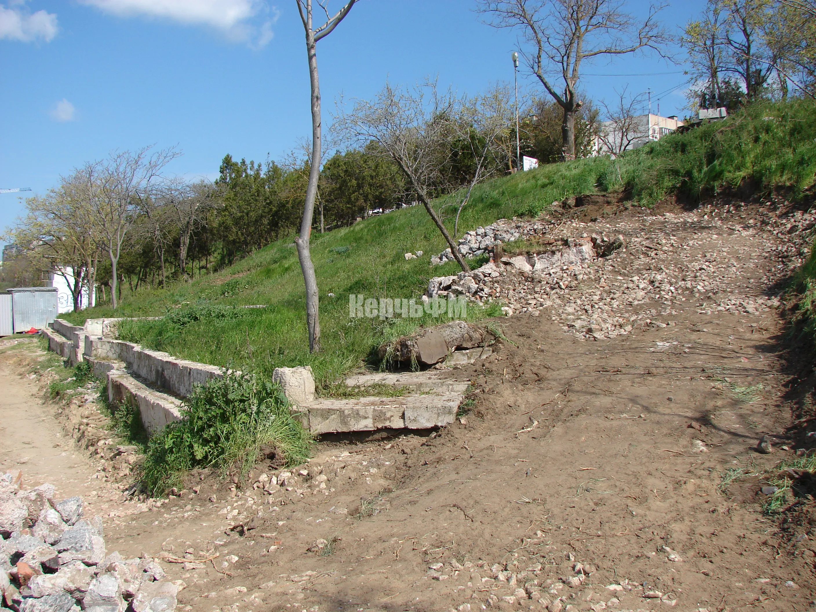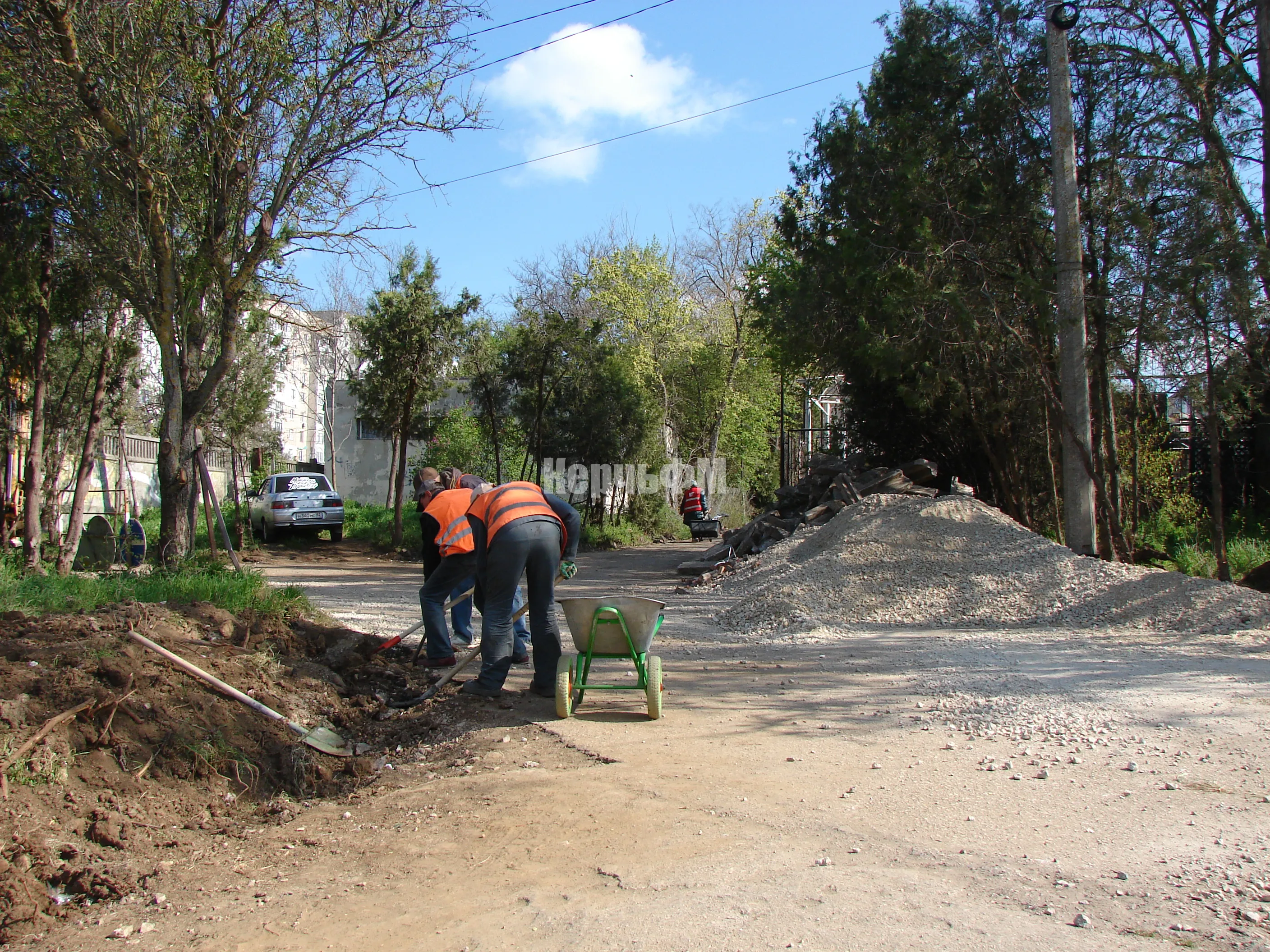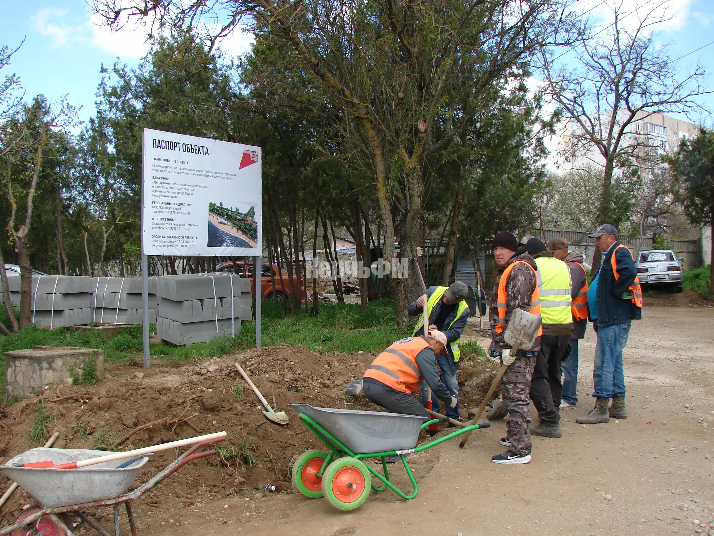 Сегодня рабочие продолжают готовить траншеи под бордюрный камень на спуске к морю.