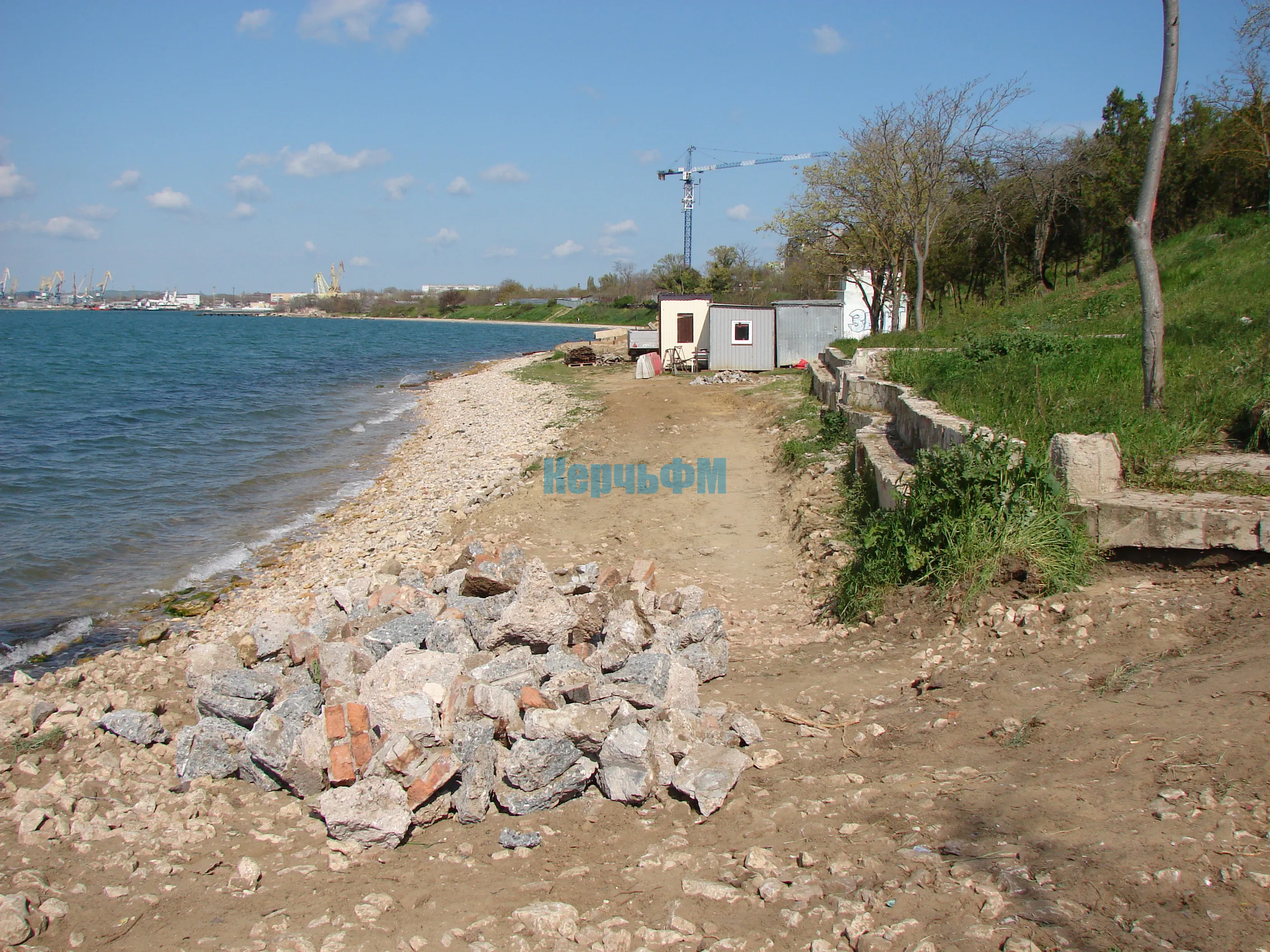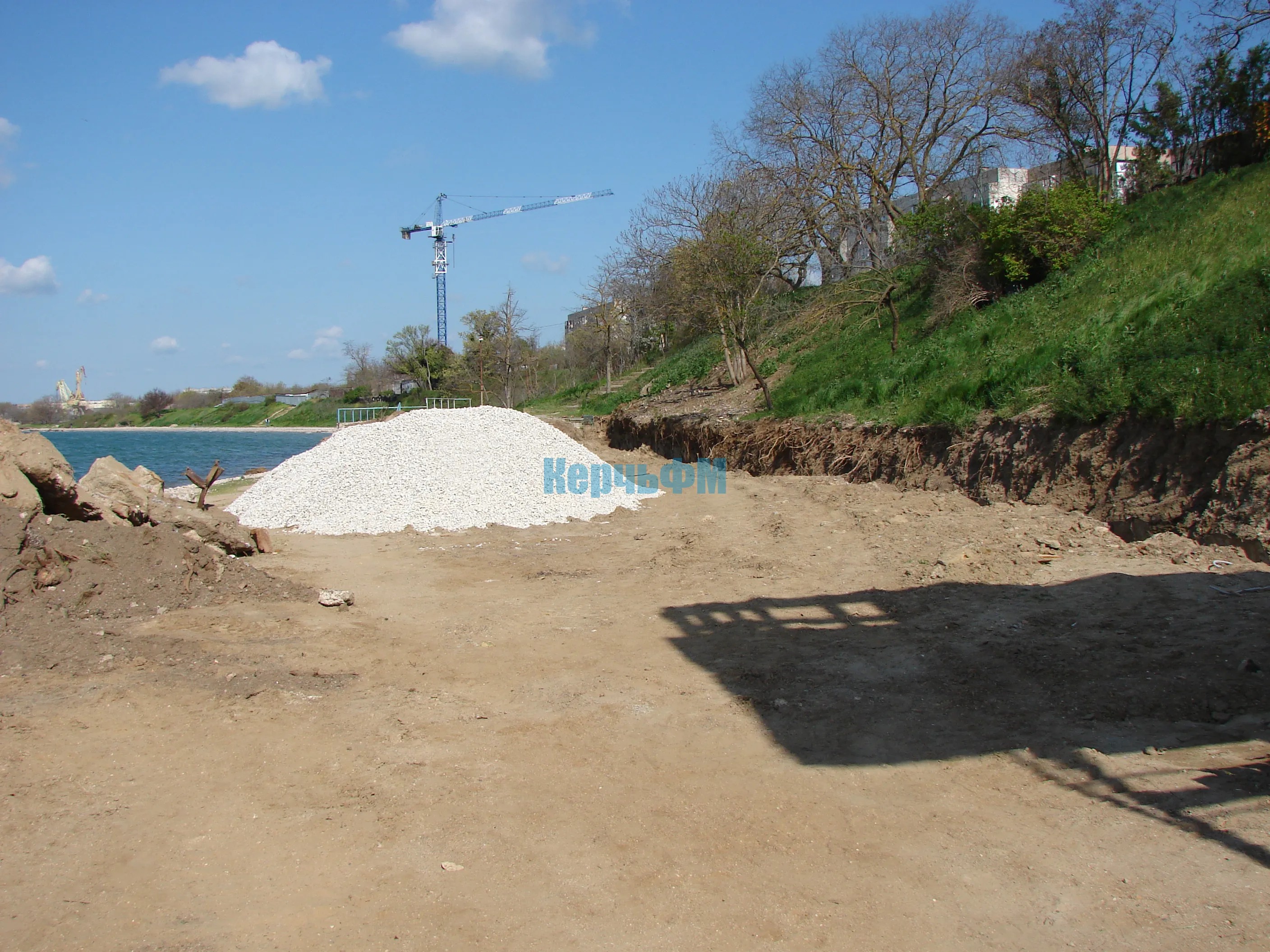 У моря слева уже видны следы тяжелой техники, которая расчищает пляжную зону от камней, передает КерчьФМ.