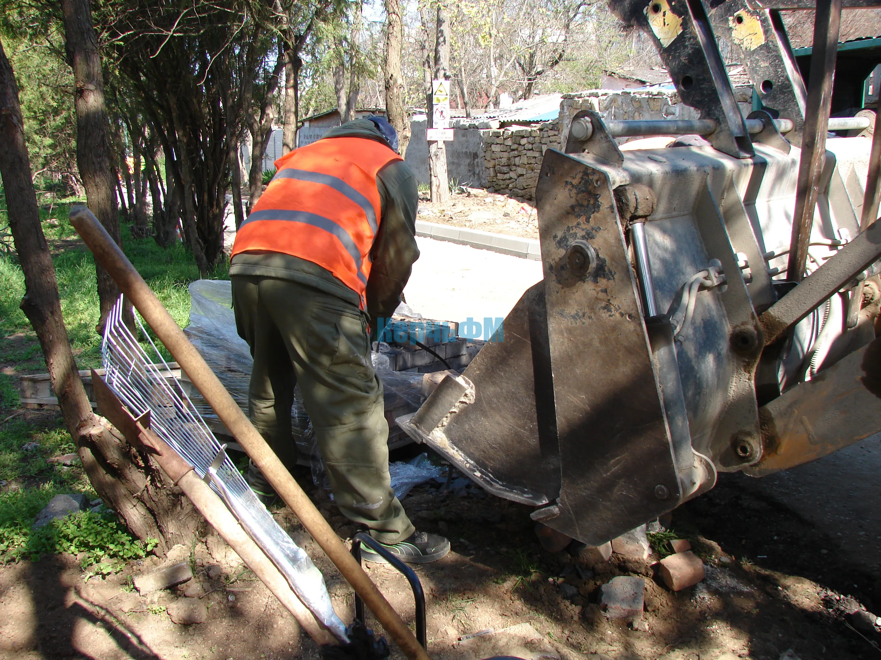 На объекте трудятся и коммунальные службы - убирают лишний мусор.