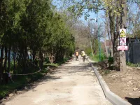 На верхнем ярусе вдоль аллеи у домов частного сектора уложили новые бордюры.