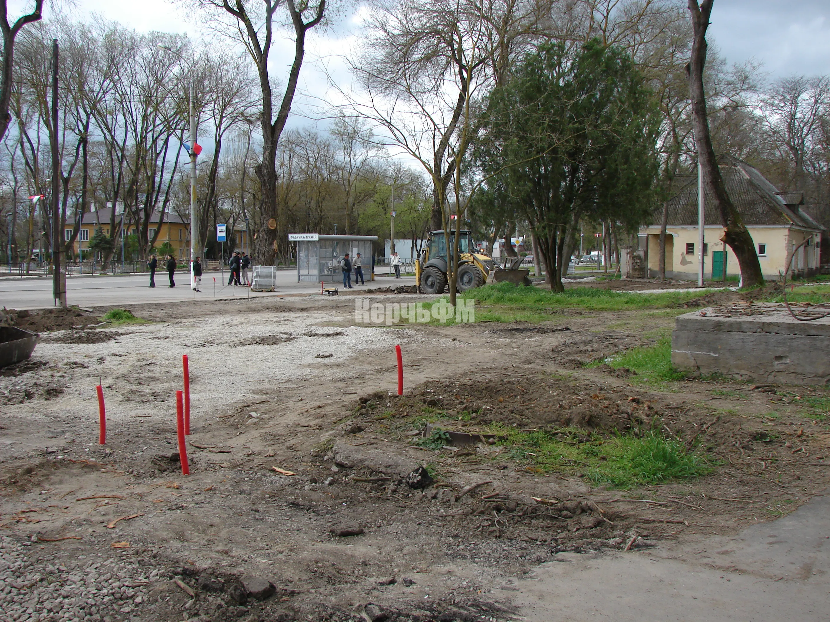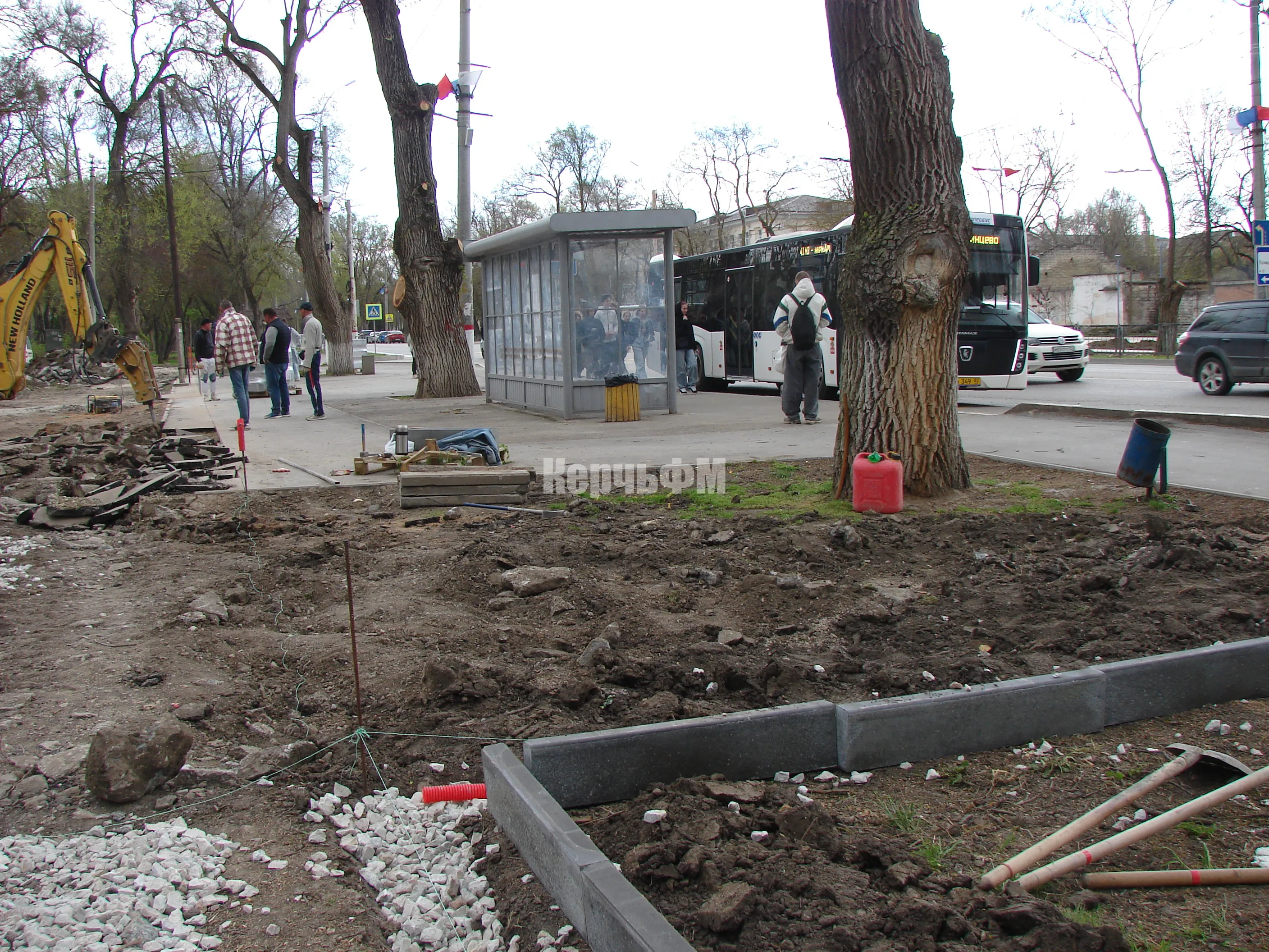 Сегодня работы развернуты непосредственно за остановкой, от которой транспорт следует в центр города.
