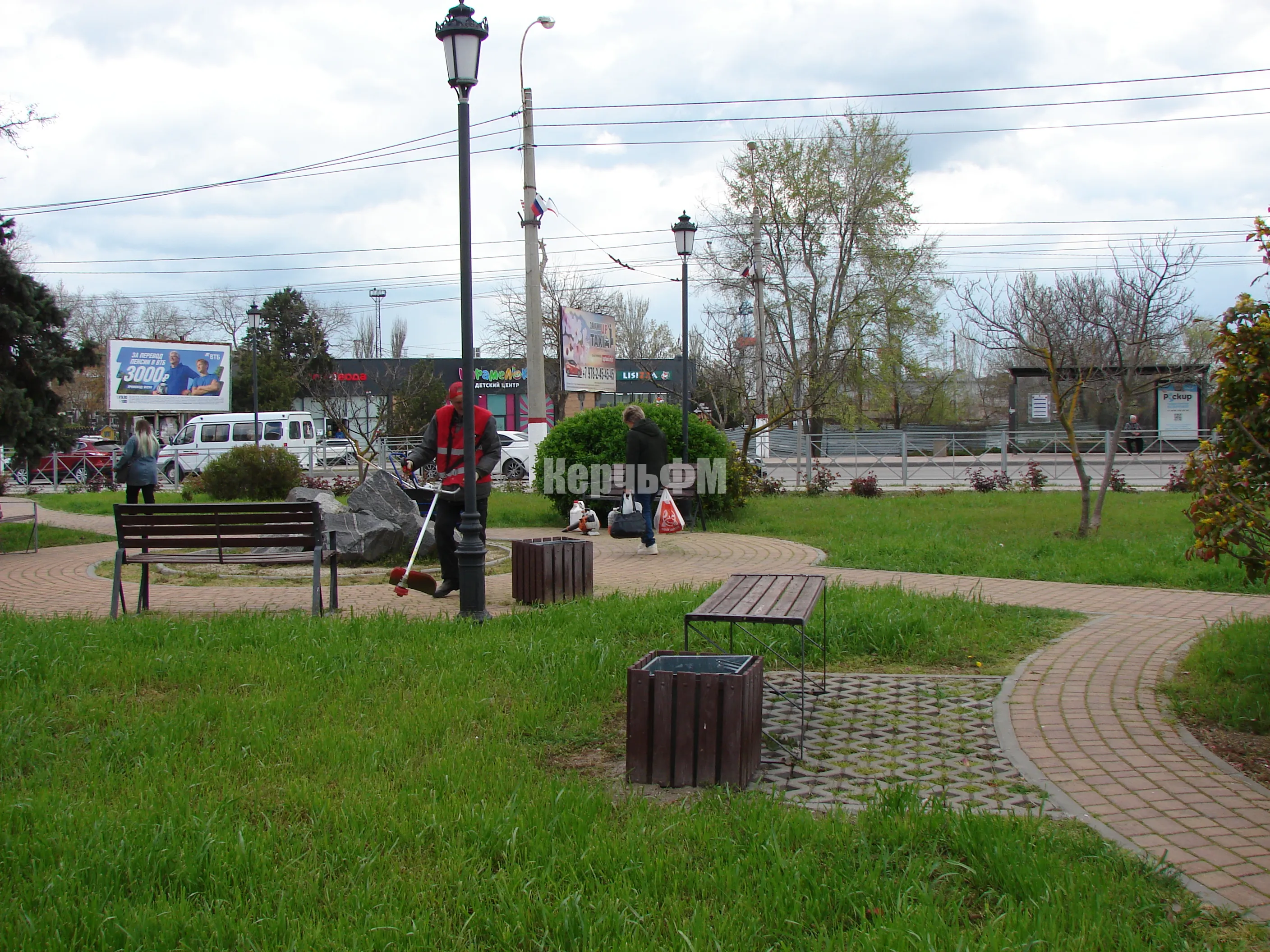 Коммунальные службы за сквером ухаживают постоянно и даже состригают косилкой траву, прорастающую между тротуарными плитками на пешеходных дорожках.