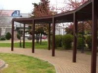 Особенно люди любят отдыхать под перголами на подвесных качелях.