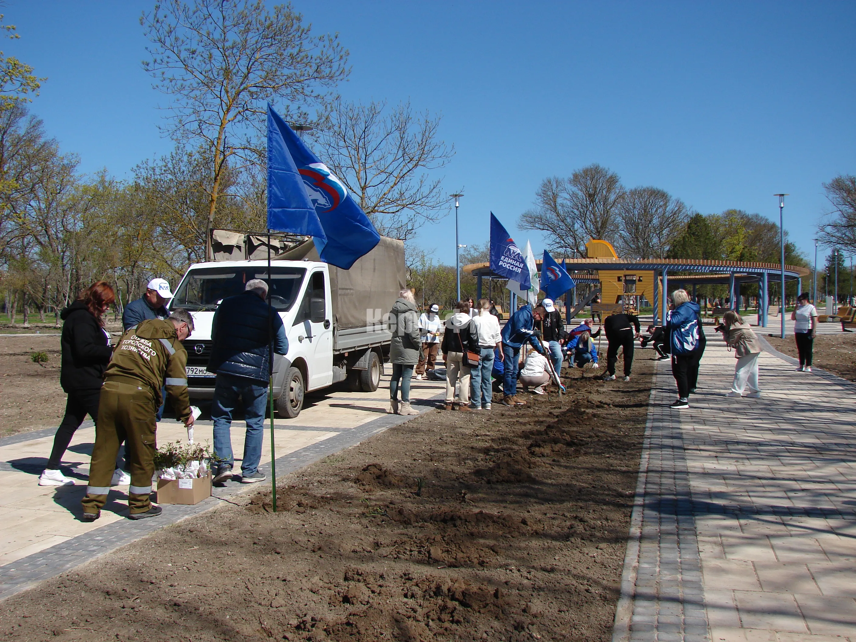 В субботнике приняли участие депутат Госсовета Крыма Евгений Масюткин, глава администрации Керчи Олег Каторгин, глава муниципального образования Денис Колесник, пообещав, что работа по озеленению парка продолжится, а за высаженными цветами будет вестись тщательный уход, передает КерчьФМ.