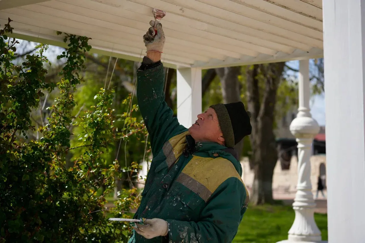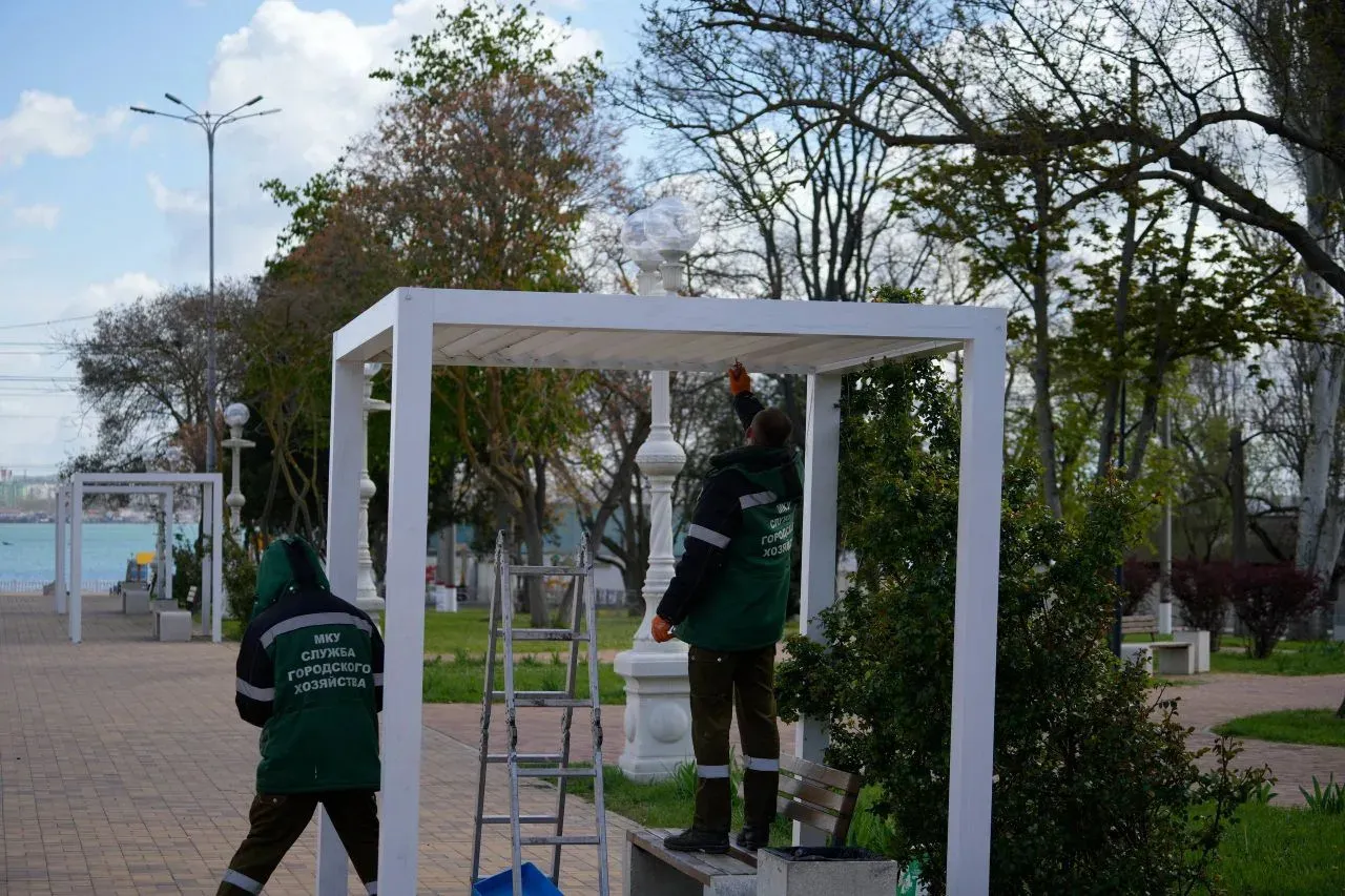 Параллельно продолжаются работы по приведению в порядок общественных пространств. Бригада работает в центре Керчи — красит перголы вокруг колоннады. Эти мероприятия делают наш город еще более уютным и привлекательным для прогулок и отдыха.