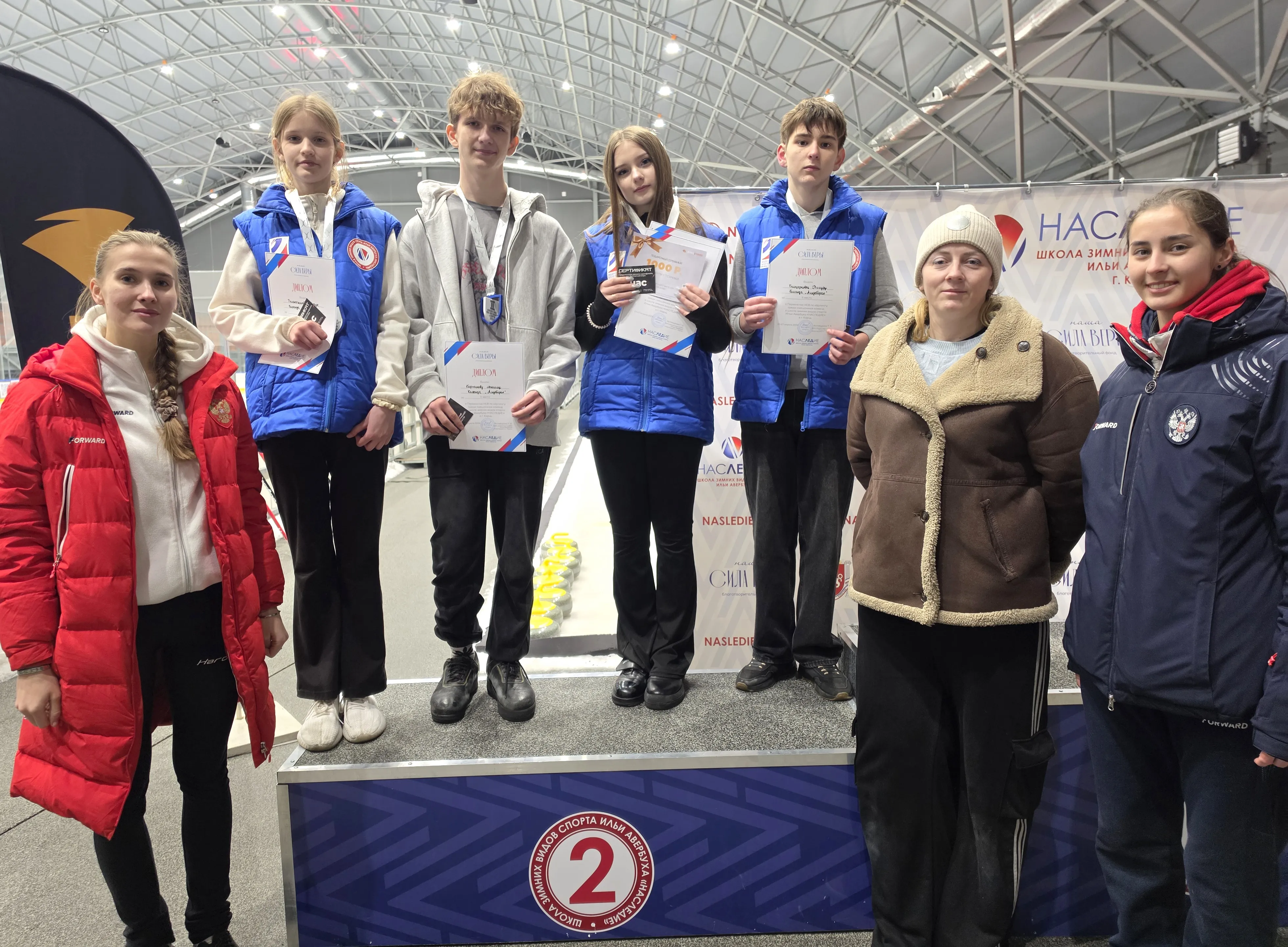 🙏 Старшему тренеру по кёрлингу Марии Владиславовне Марченковой, тренерам Анне Владимировне Легаловой и Полине Александровне Мурзиной — за подготовку спортсменов, их дисциплину и характер. Ваш труд — в медалях ваших воспитанников!