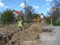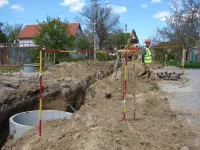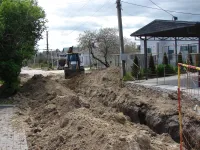 На первом этапе были уложены новые трубы на участке от улицы Полевой до переулка Кирпичный, а также установлены и смонтированы все колодцы для подключения к новому водоводу домов частного сектора.