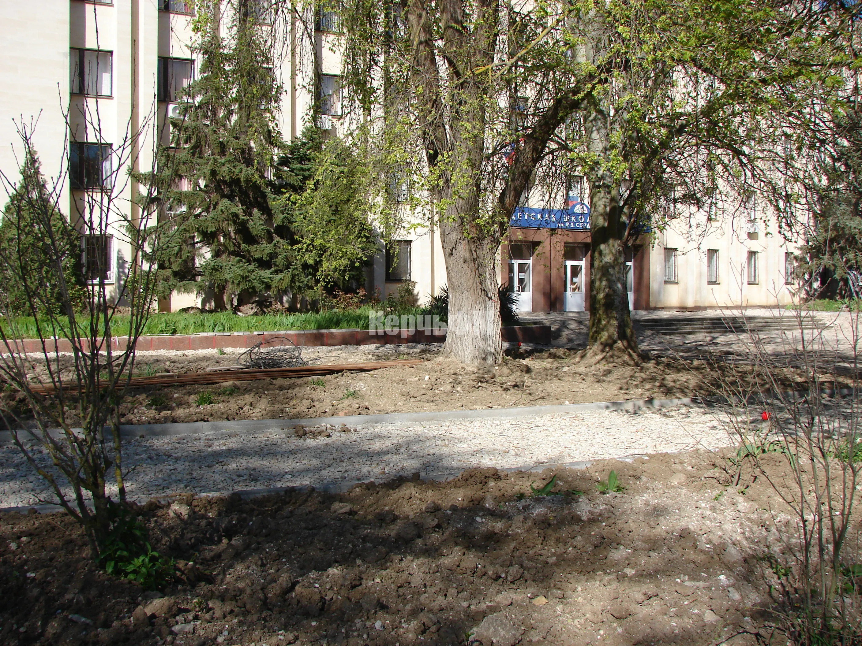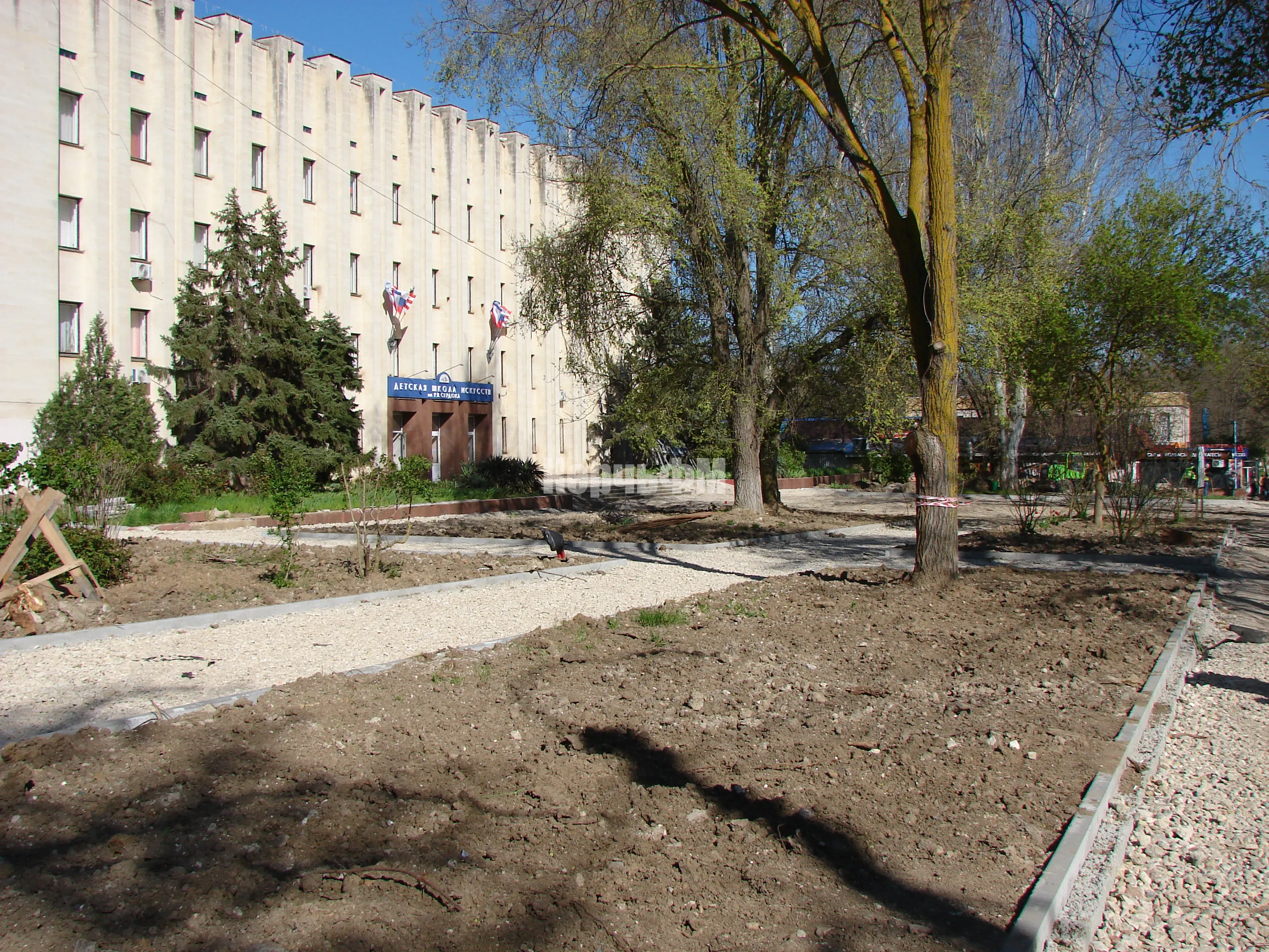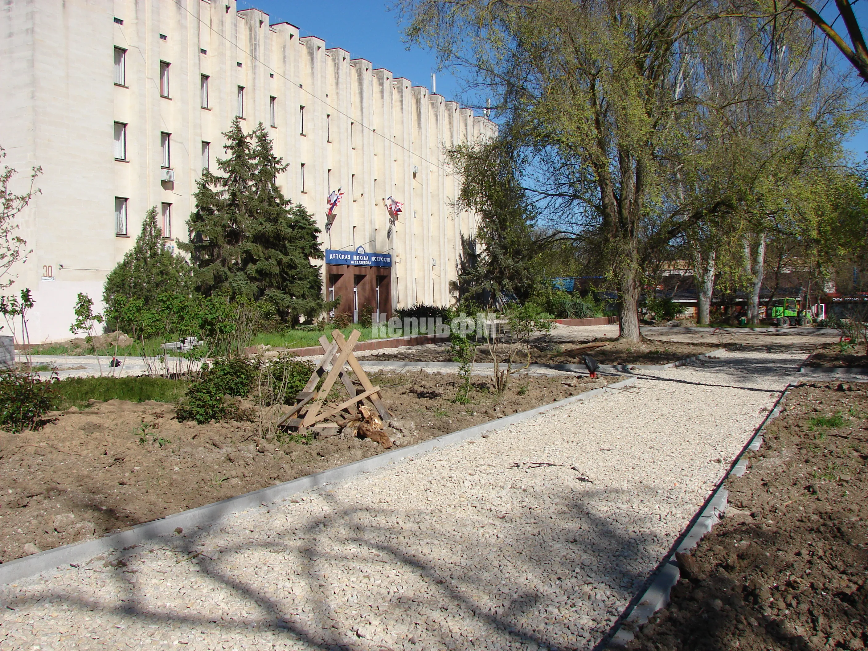 У Школы искусств Р.Сердюка в Керчи приводят в порядок газоны