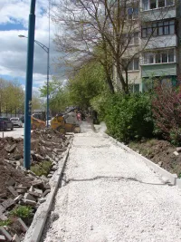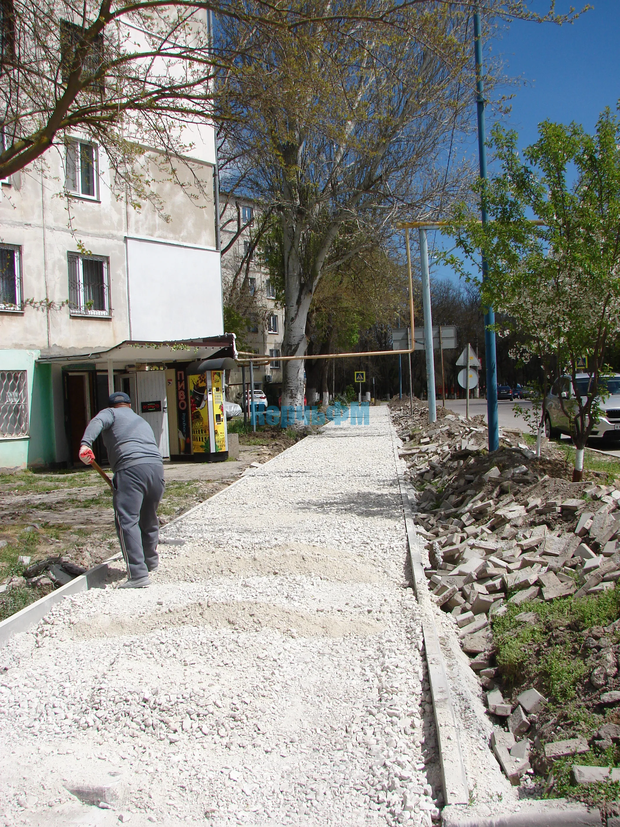 Вдоль Кирова в Керчи готовят к асфальтировке тротуар, ведущий к школе №25
