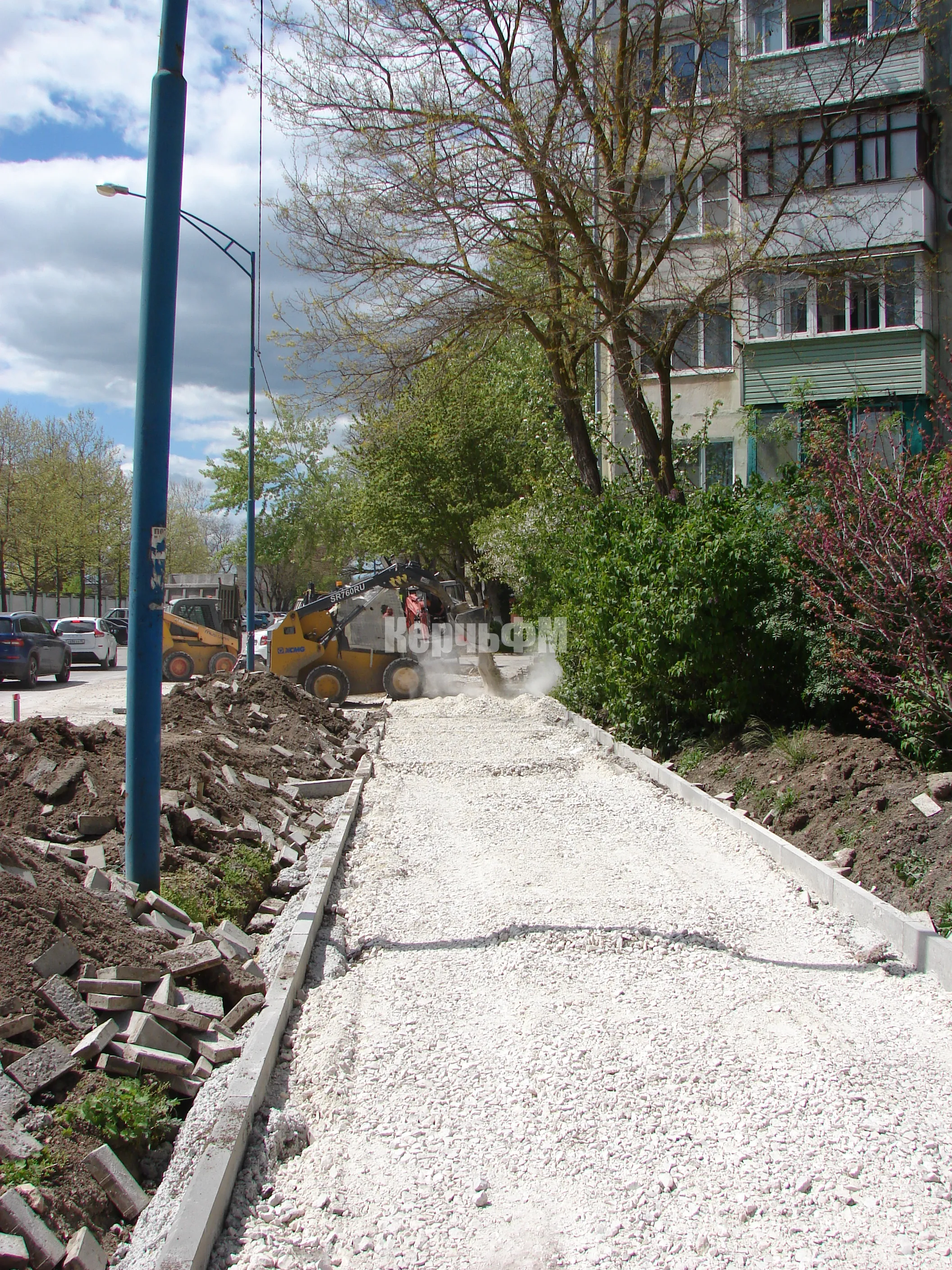 Асфальтировка тротуаров вдоль улицы Кирова со стороны МКД продолжается.