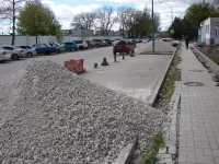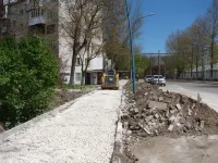Недоделанными остаются фрагменты тротуара вдоль Комсомольского парка.