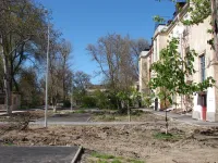 В ходе комплексного благоустройства территории у пятиэтажного дома по Суворова, 24 была расширена подъездная дорога.