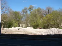 На обширной территории зонирование еще не проведено, но старые и единственные здесь качели покрасили.