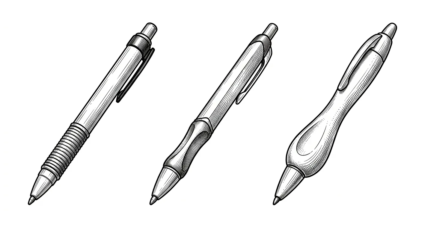 • Форма корпуса: Трёхгранная форма направляет пальцы в правильное положение. Анатомические ручки с выемками - вершина эргономики для длительного письма. Избегайте витиеватых декоративных ручек.