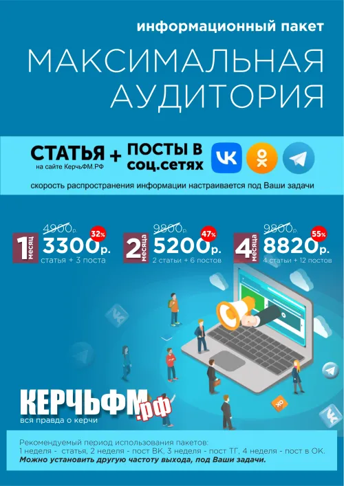 Для оформления заказа пакета  "Максимальная аудитория" на сайте КерчьФМ звоните по телефону +7978 824 93 03 (доступен Ватцап и Телеграм)