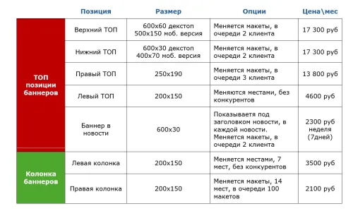 - Баннеры должны вести на страницу на нашем сайте (страница в каталоге Фирмы или ссылка на новость в разделе Лучшие. В этом случае статья в разделе "Лучшие" оплачивается отдельно - 1800 руб. ).